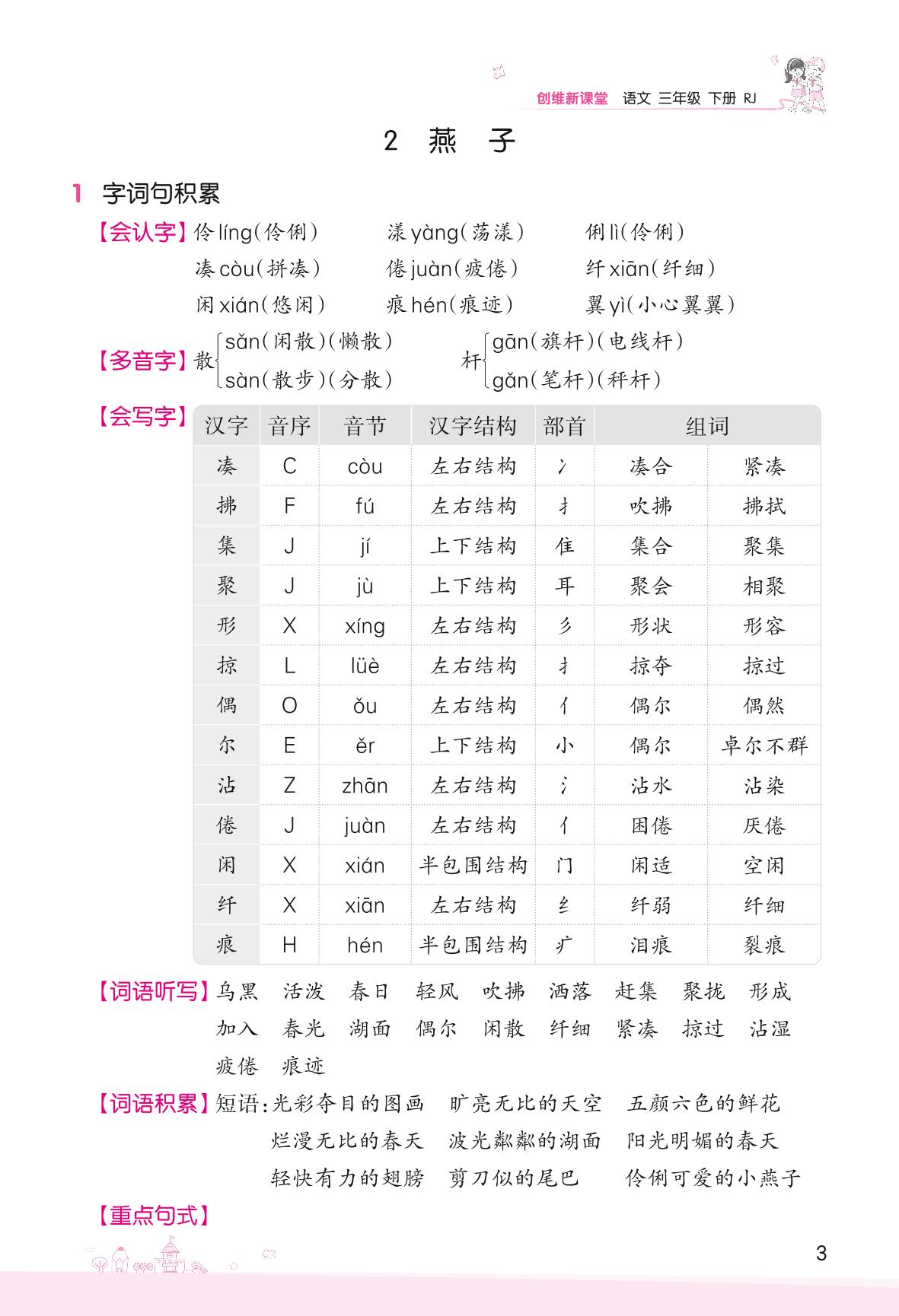 2022下册三年级语文人教版 第一单元——2 燕子_R220122120221510