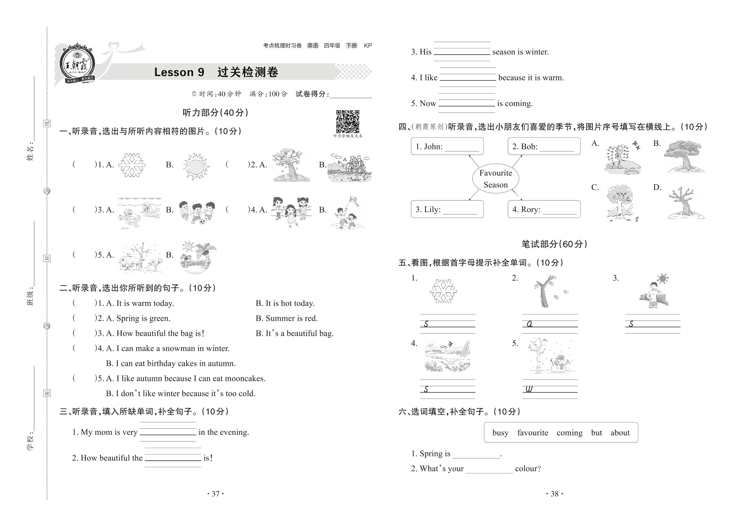 2022下册四年级英语科普版 Lesson 9 过关检测