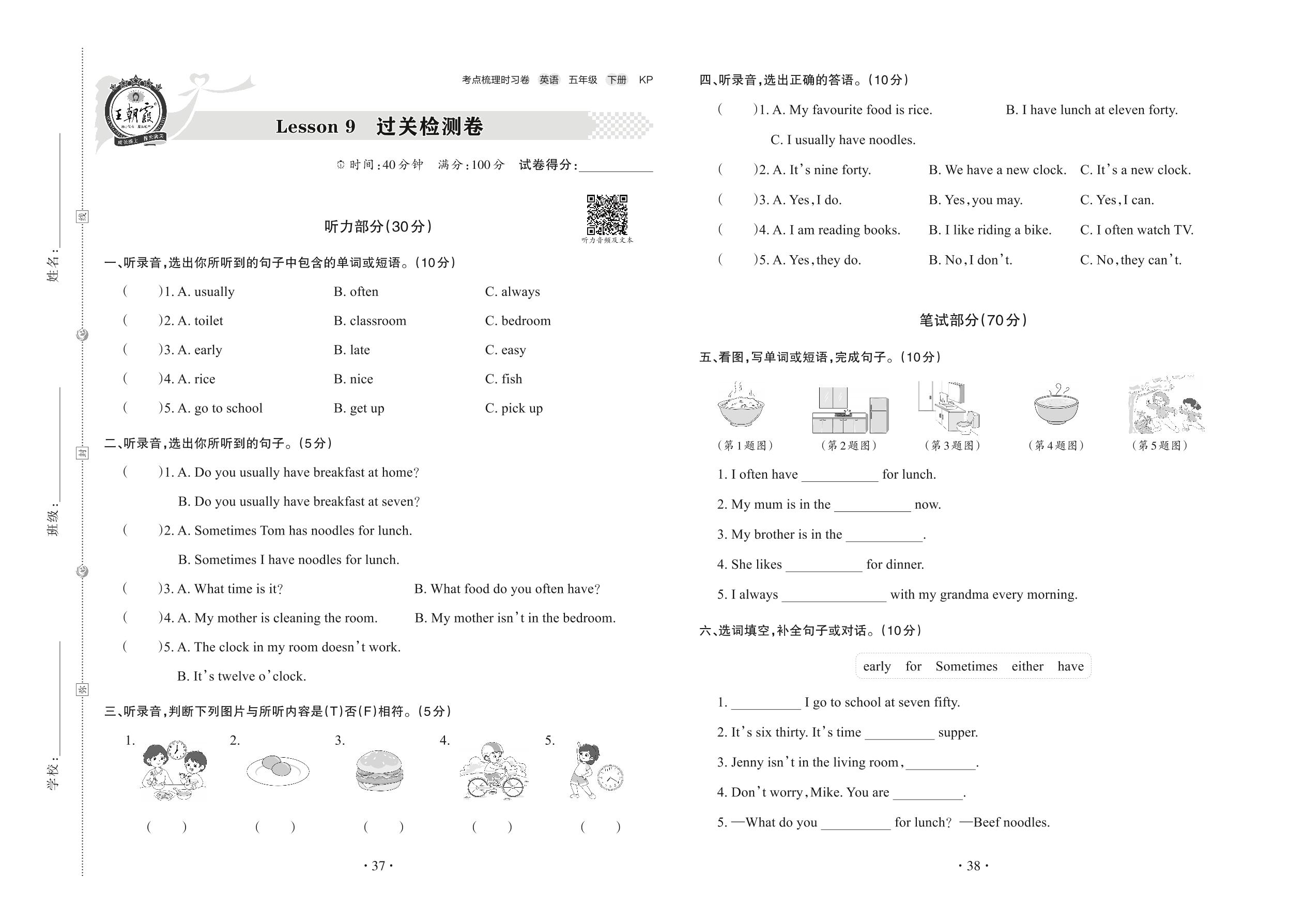 2022下册五年级英语科普版 Lesson 9 过关检测