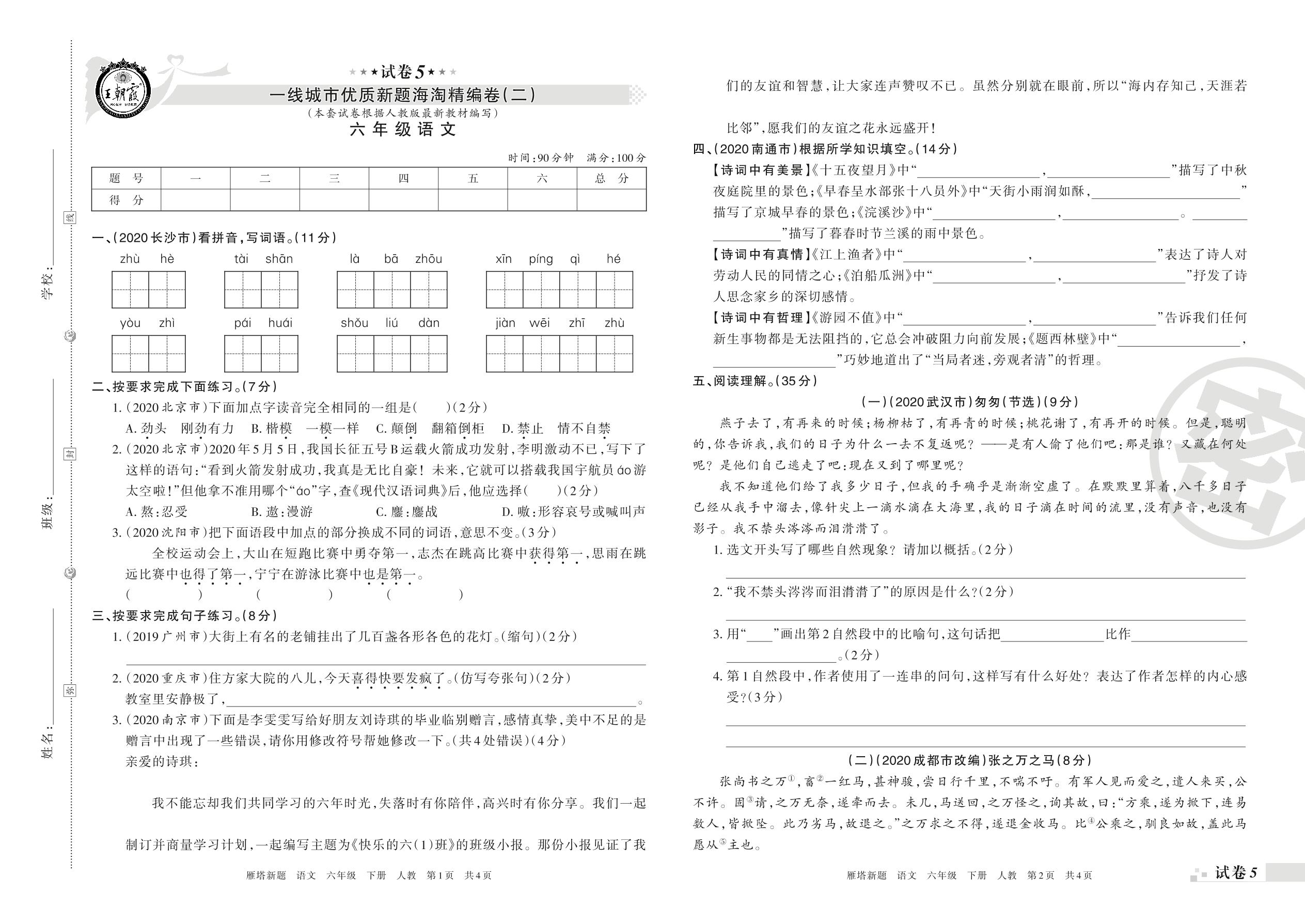 王朝霞海淘期末精编卷六年级下册语文(人教版)_R210801232649【5】
