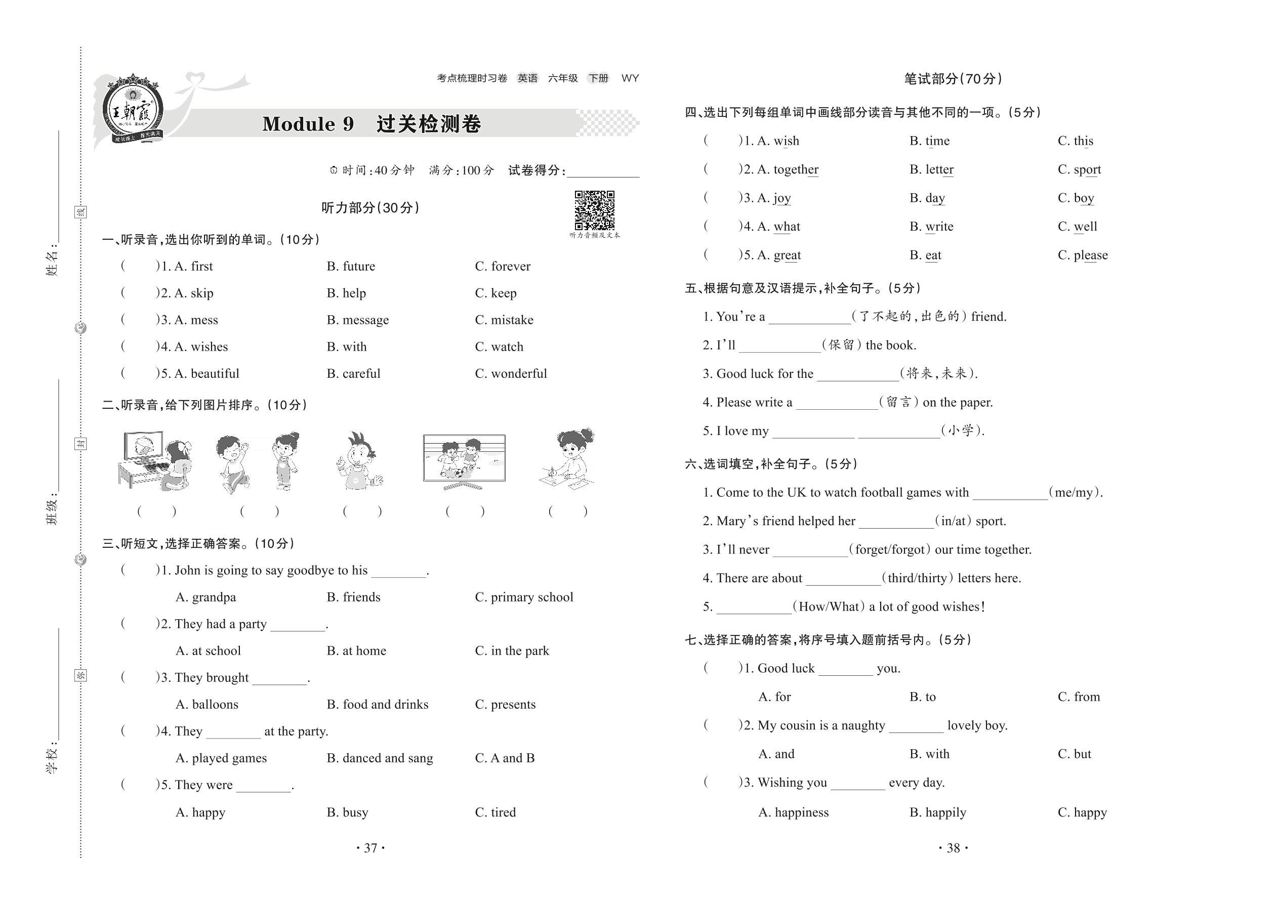 六年级英语外研版(三起始)下册单元卷