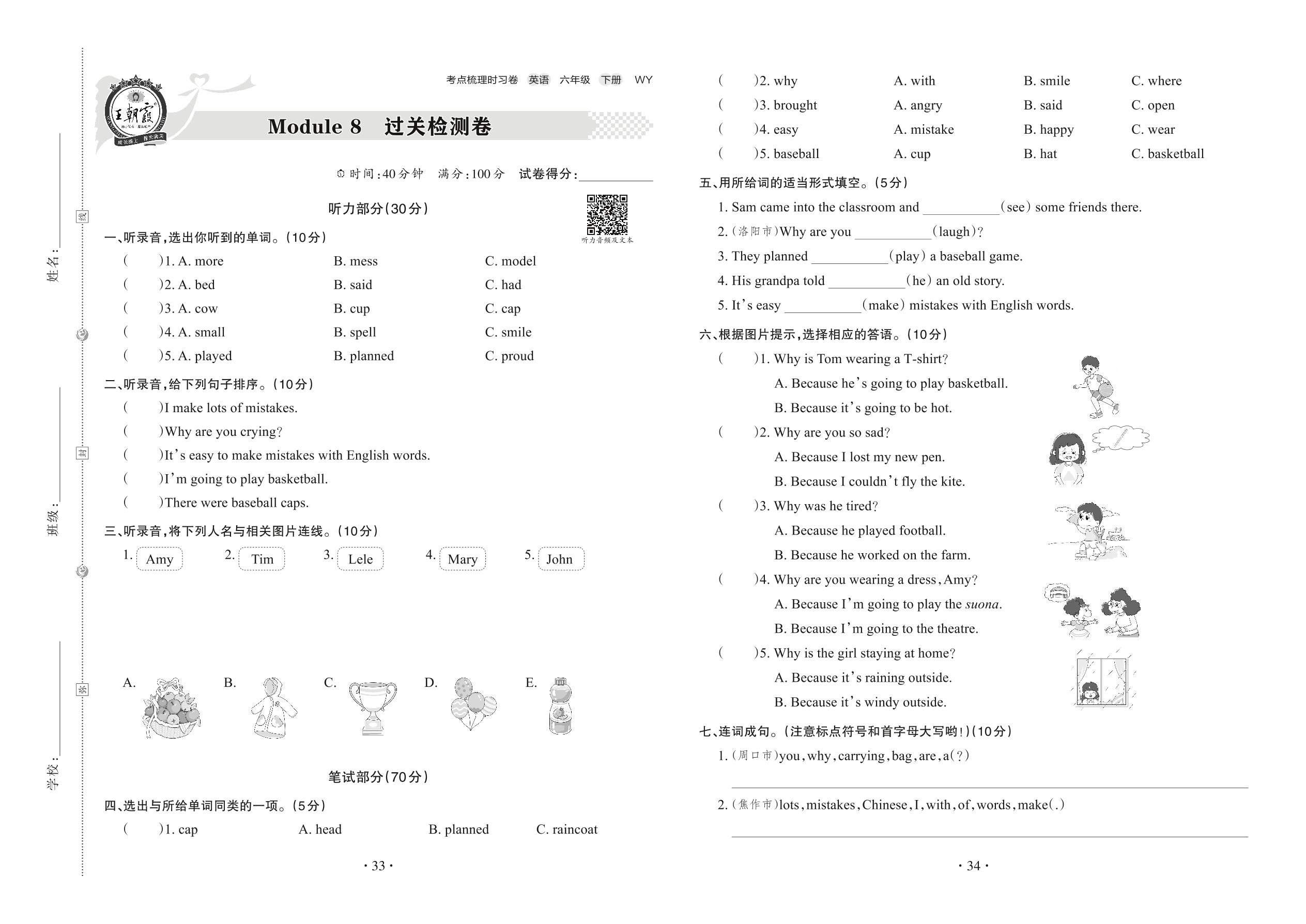 2022下册六年级英语外研版 Module 8 过关检测卷