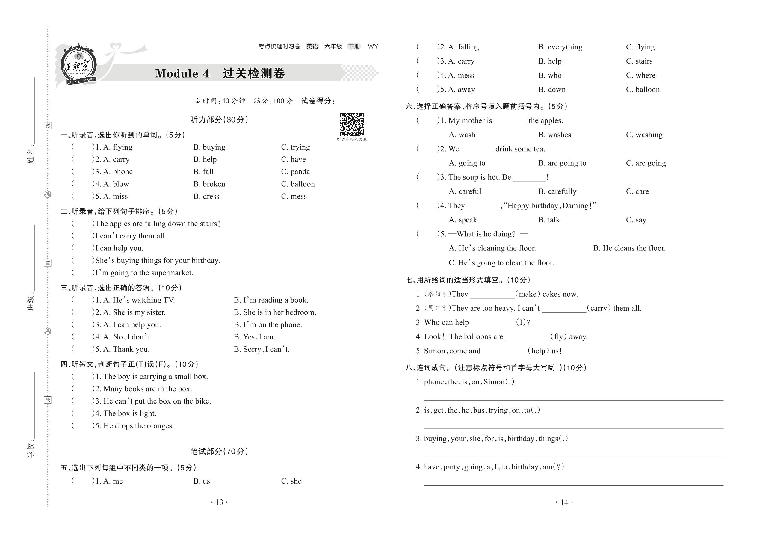 2022下册六年级英语外研版 Module 4 过关检测卷