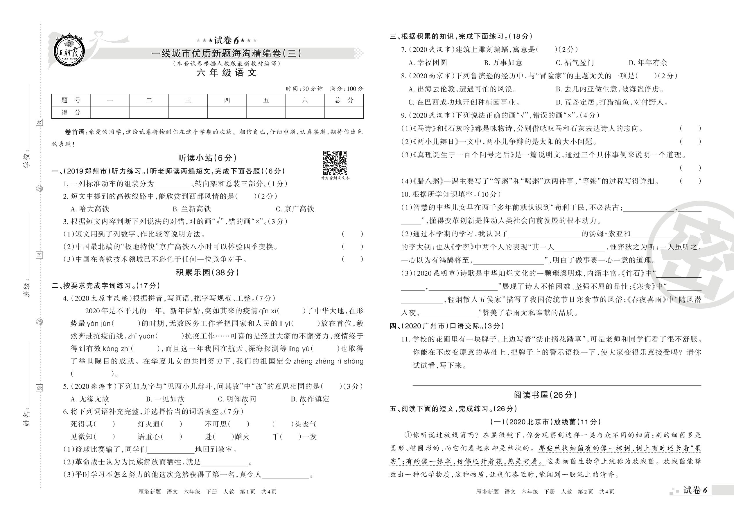 王朝霞海淘期末精编卷六年级下册语文(人教版)_R210801232654【6】