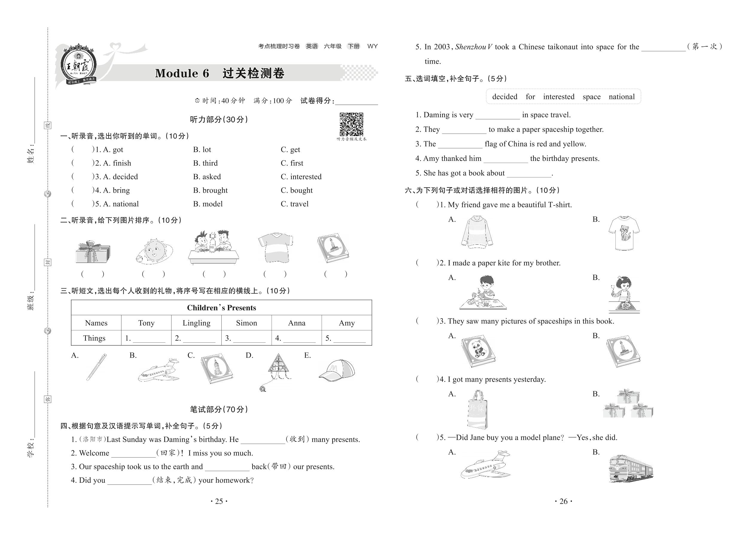 2022下册六年级英语外研版 Module 6 过关检测卷