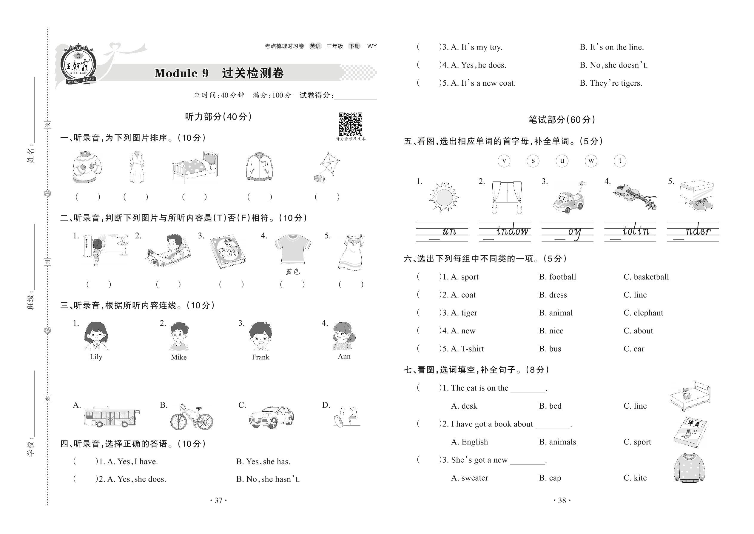 三年级英语外研版(三起始)下册单元卷