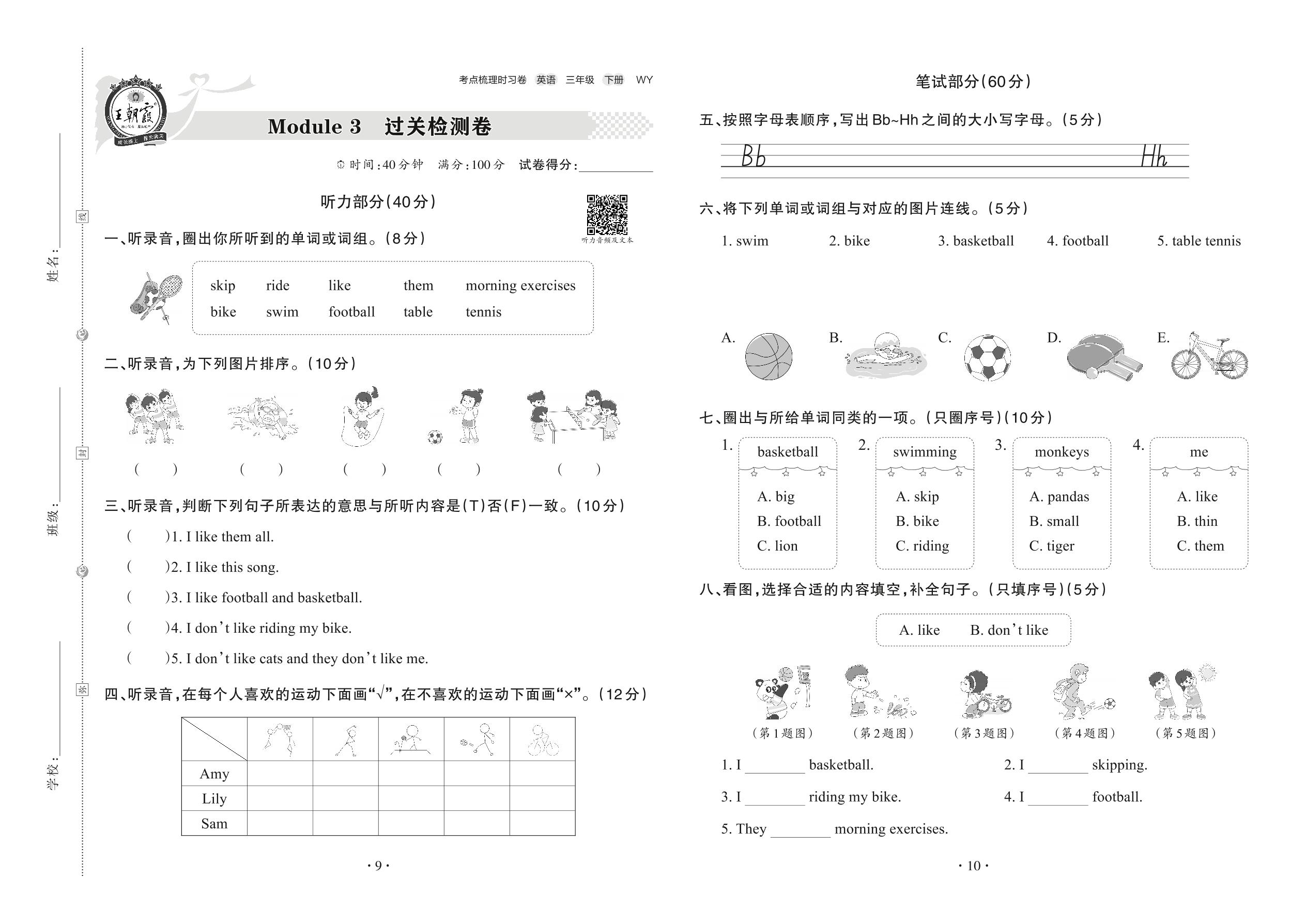 2022下册三年级英语外研版 Module 3 过关检测卷