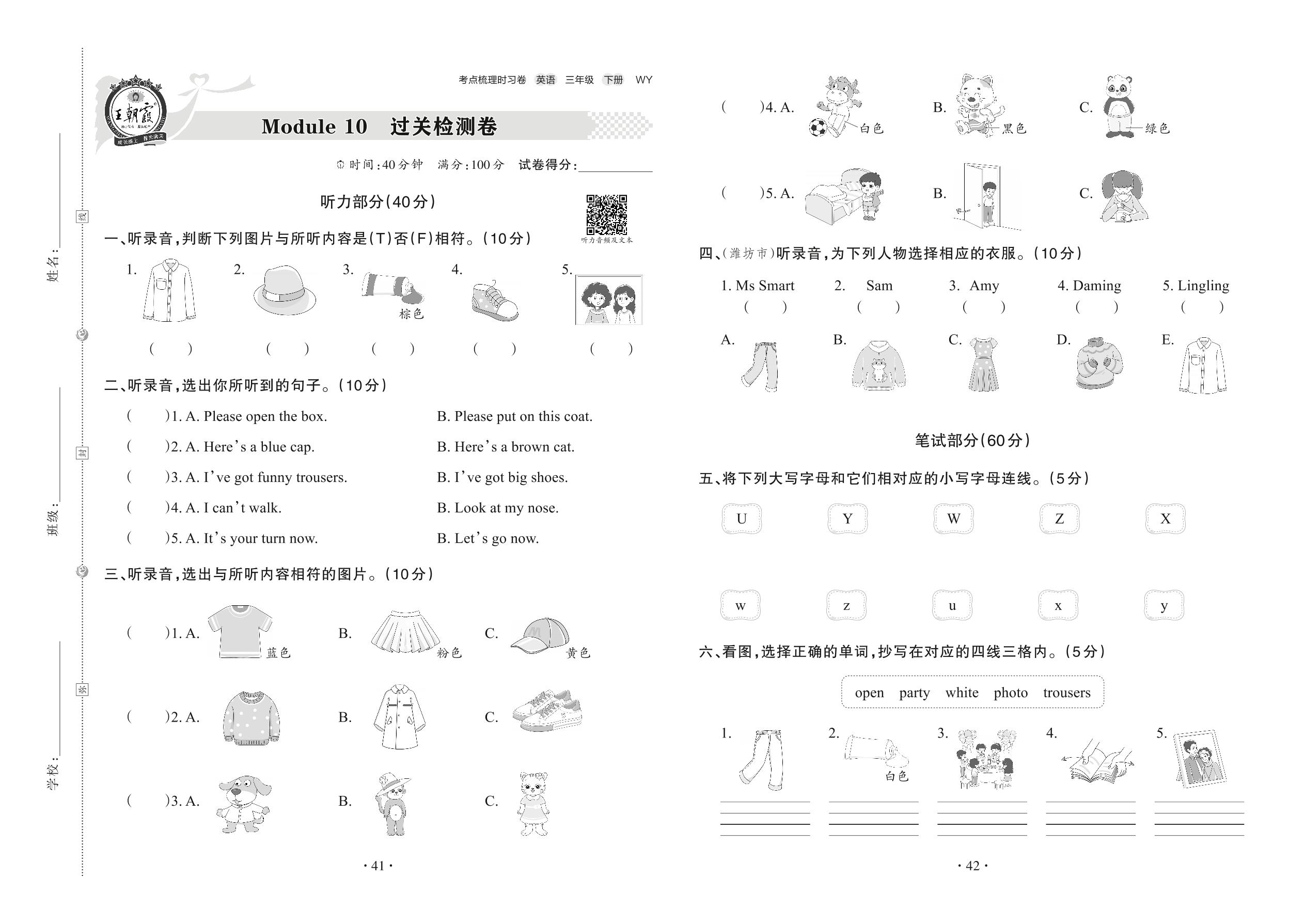 2022下册三年级英语外研版 Module 10 过关检测卷