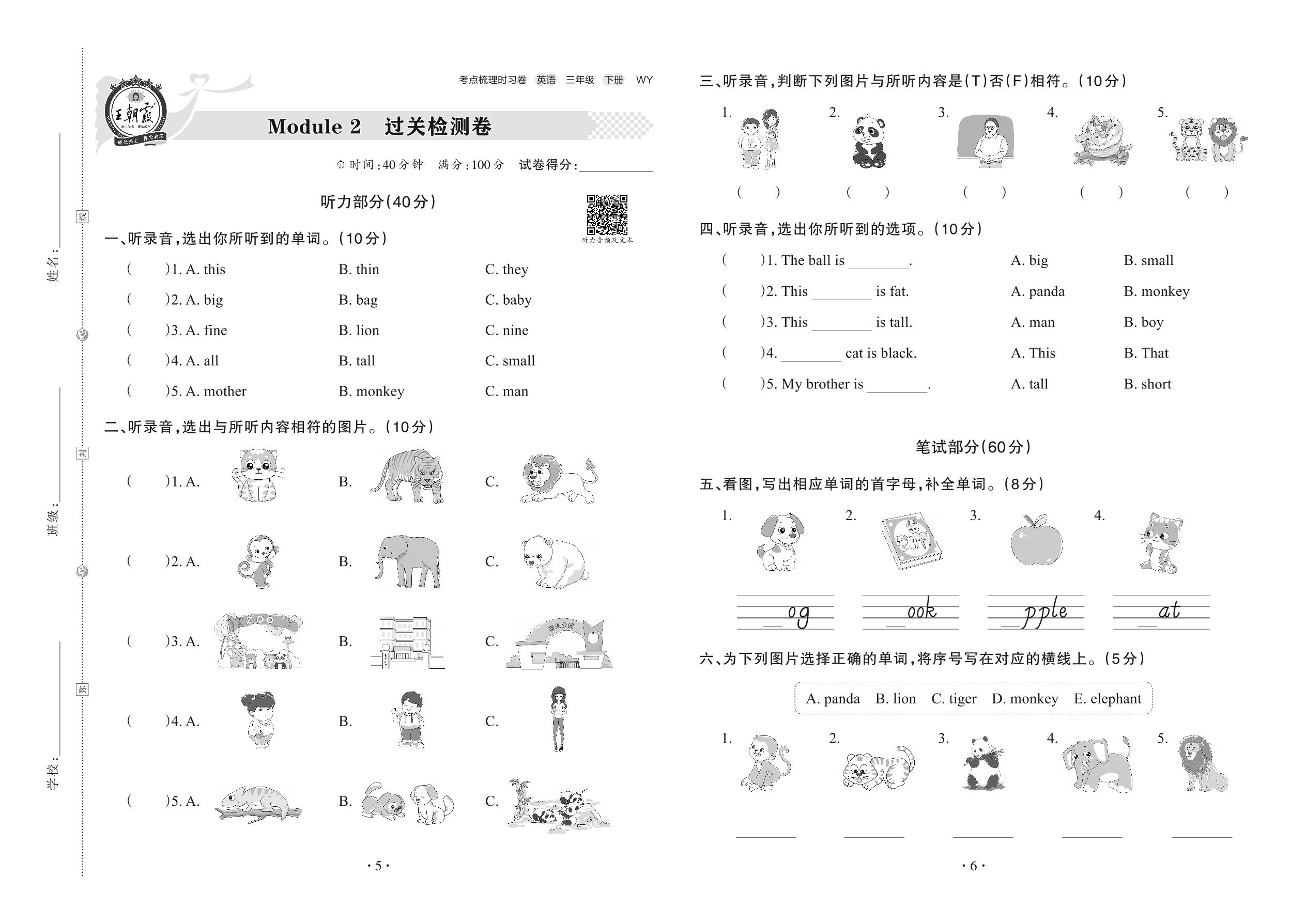 2022下册三年级英语外研版 Module 2 过关检测卷