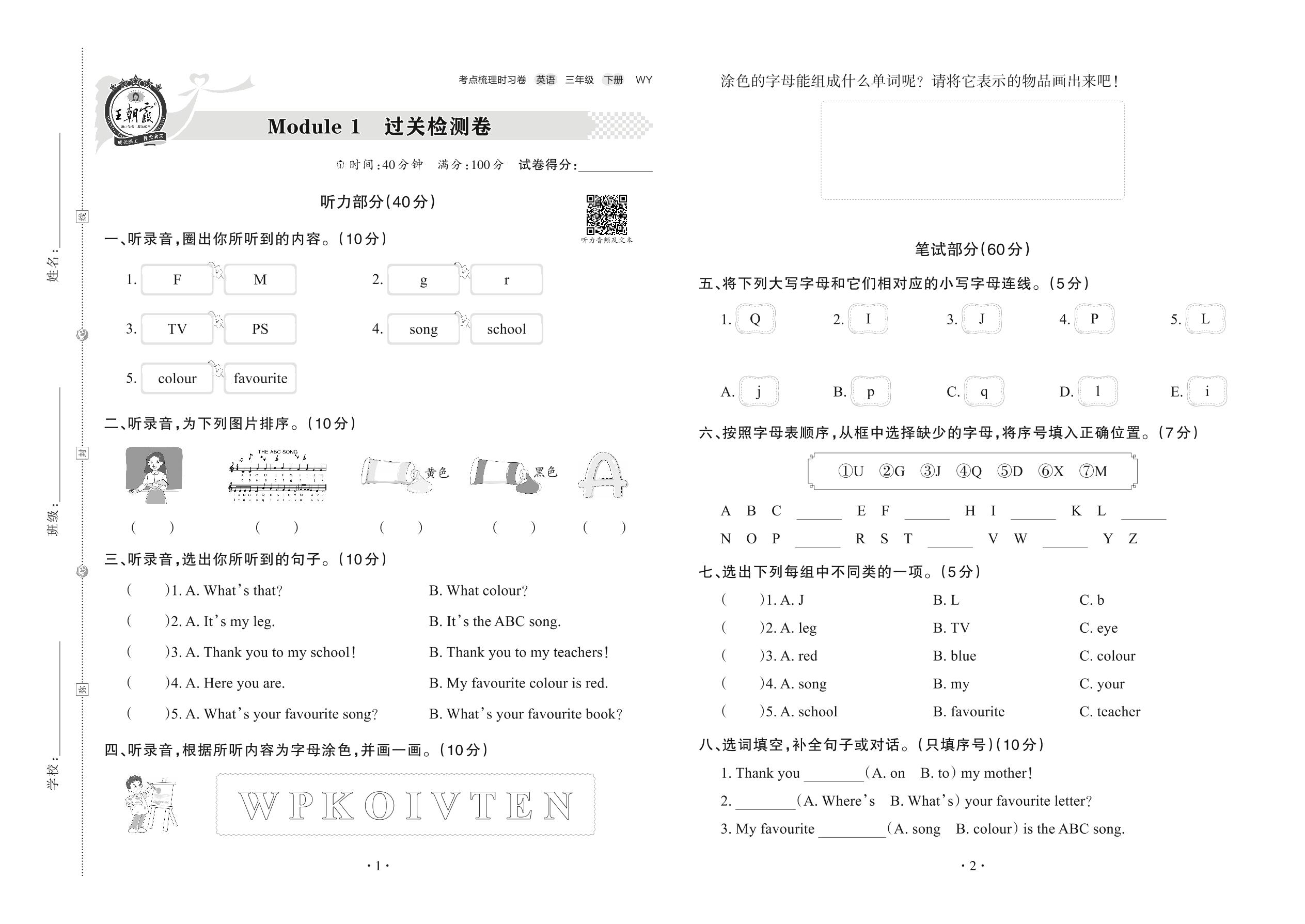 2022下册三年级英语外研版 Module 1 过关检测卷