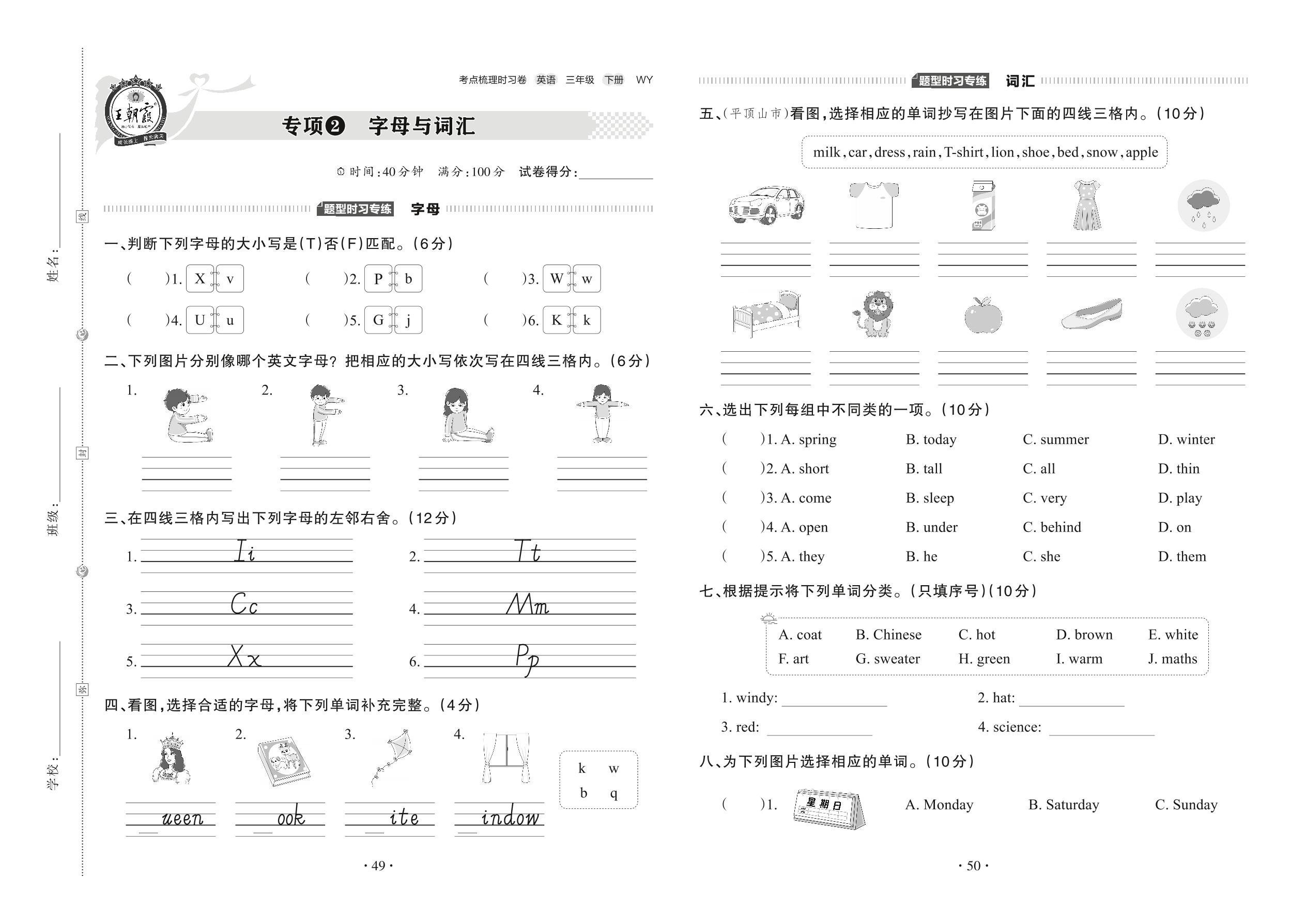2022下册三年级英语外研版 专项2 字母与词汇