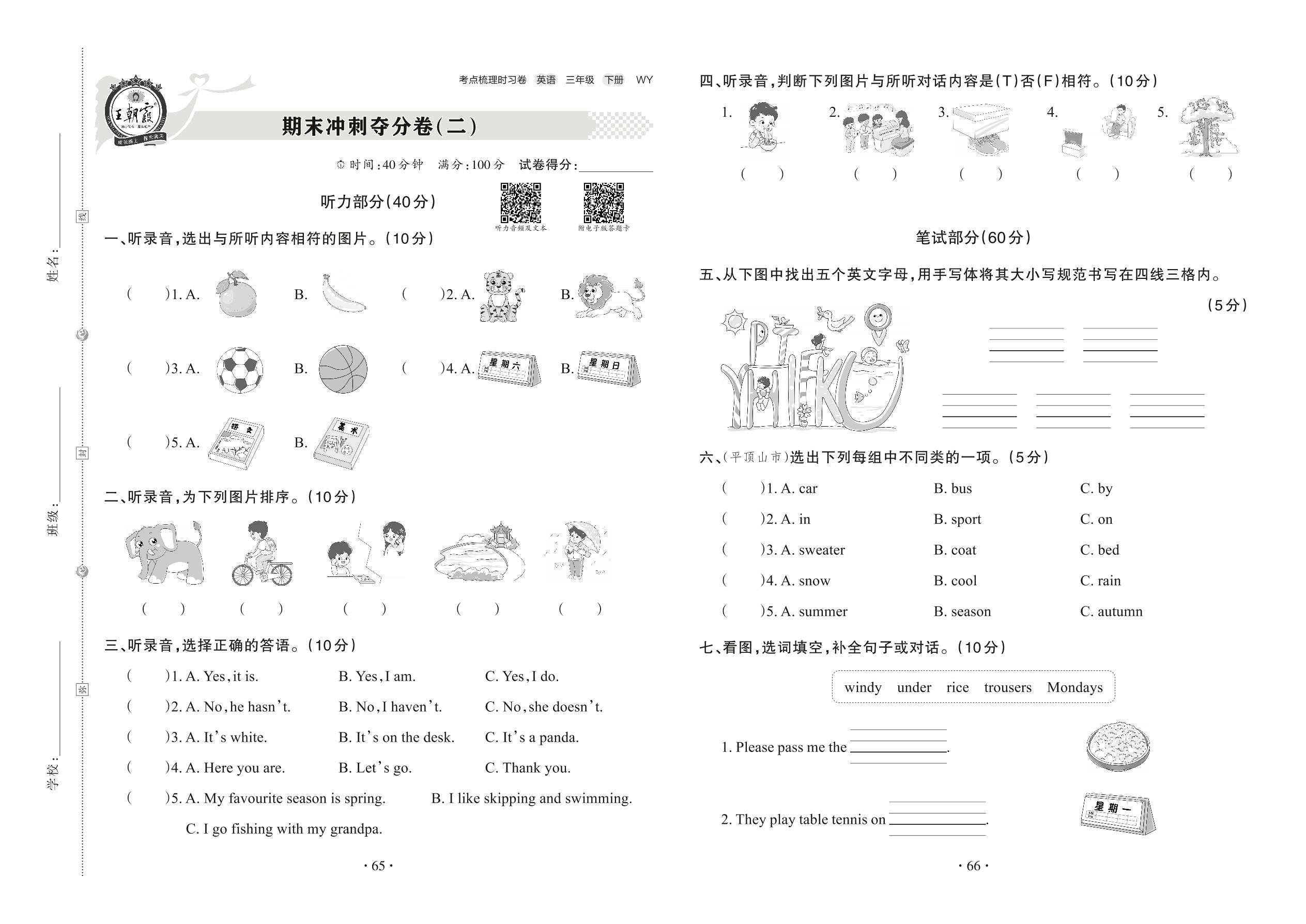2022下册三年级英语外研版 期末冲刺夺分卷(二)