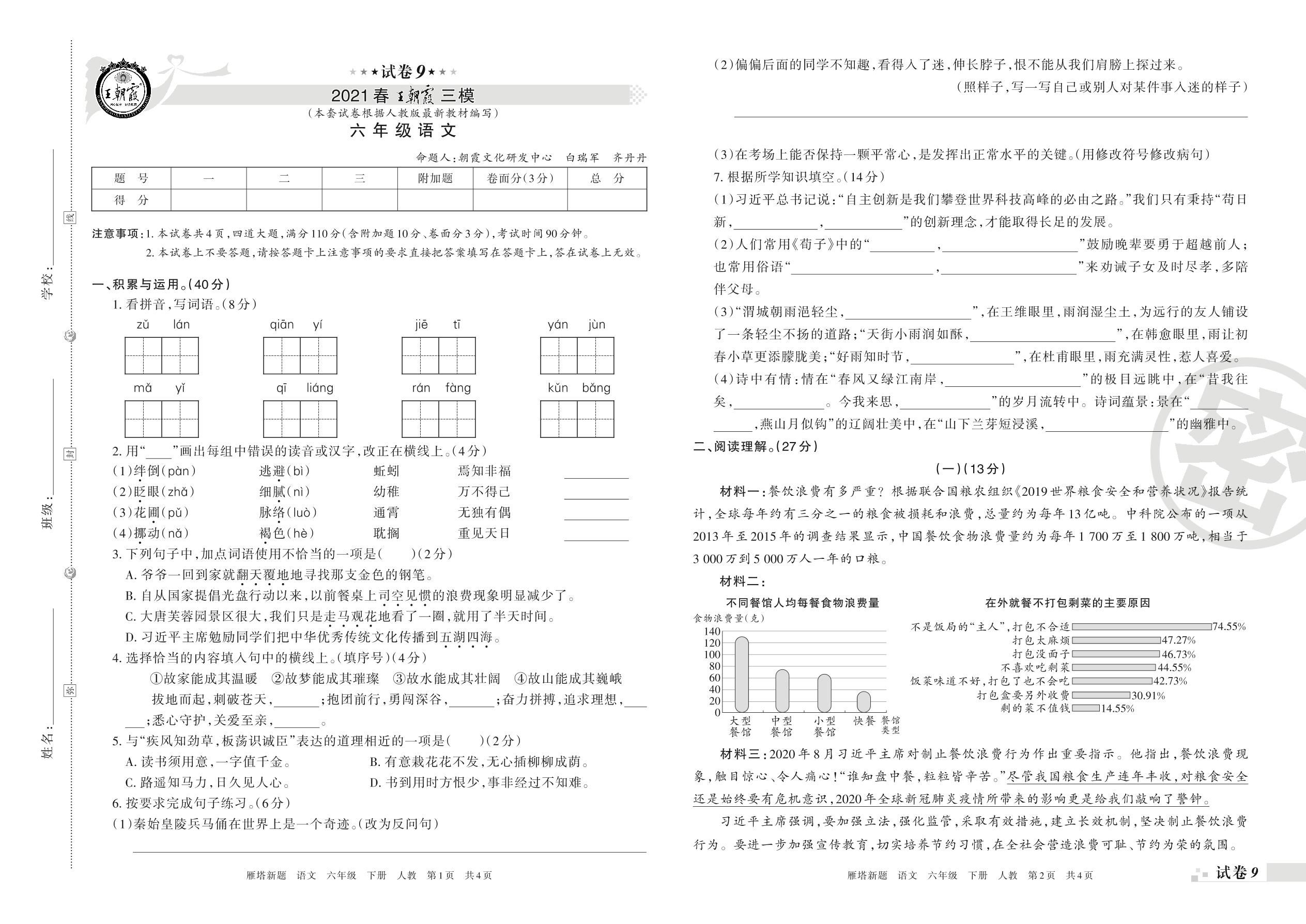 王朝霞期末模拟卷六年级下册语文(人教版)_R210801232706【9】