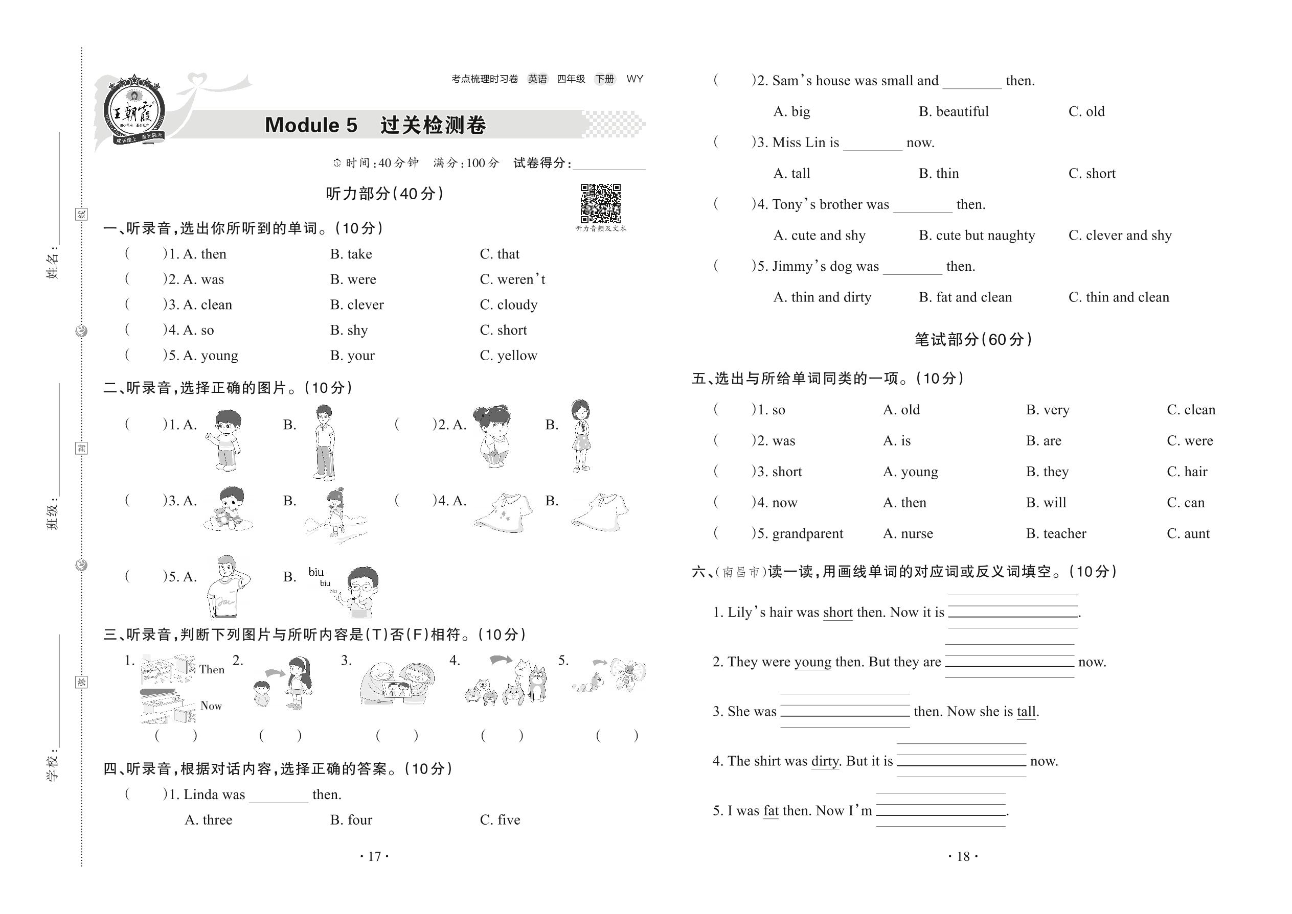 2022下册四年级英语外研版 Module 5 过关检测卷