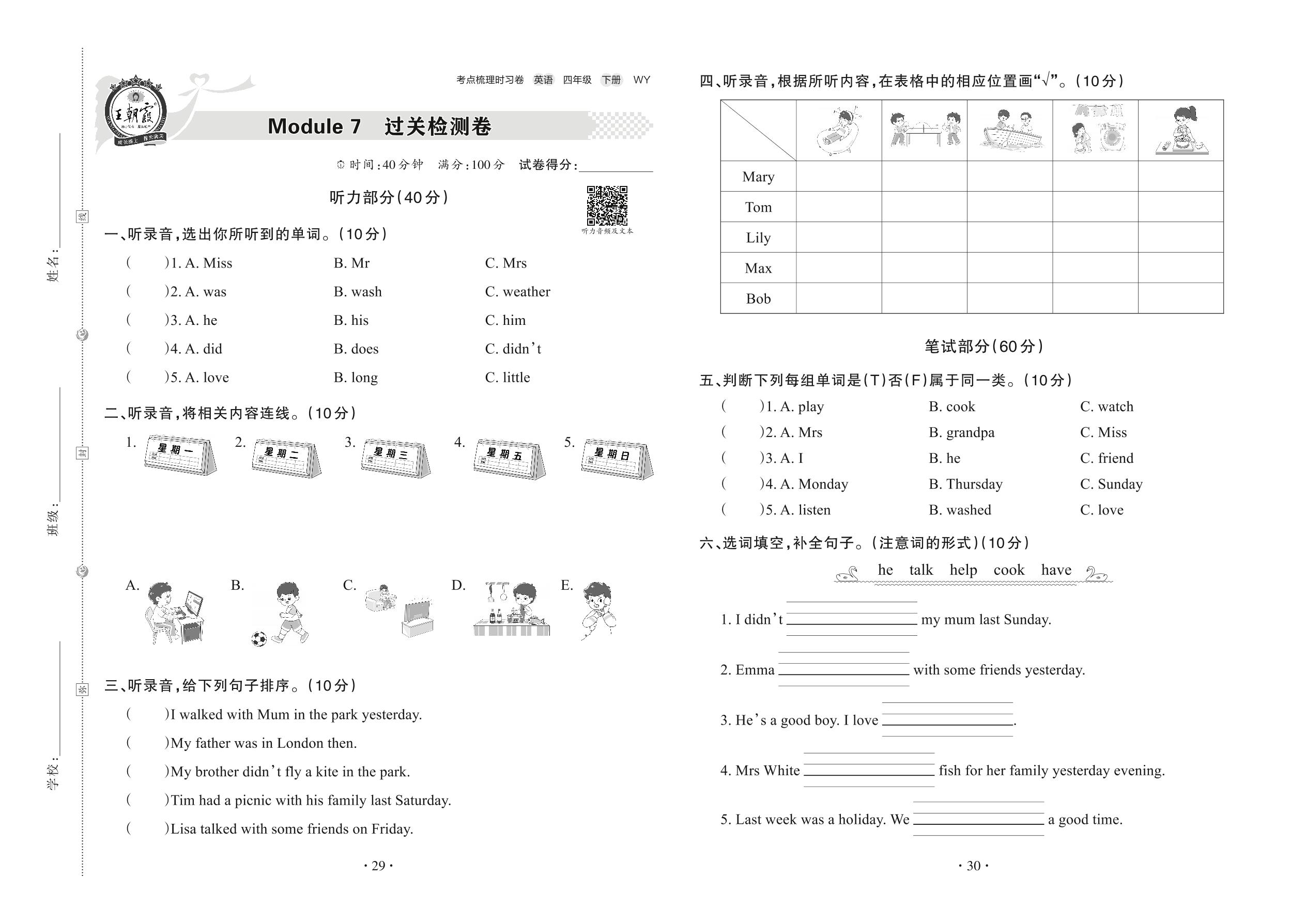 四年级英语外研版(三起始)下册单元卷