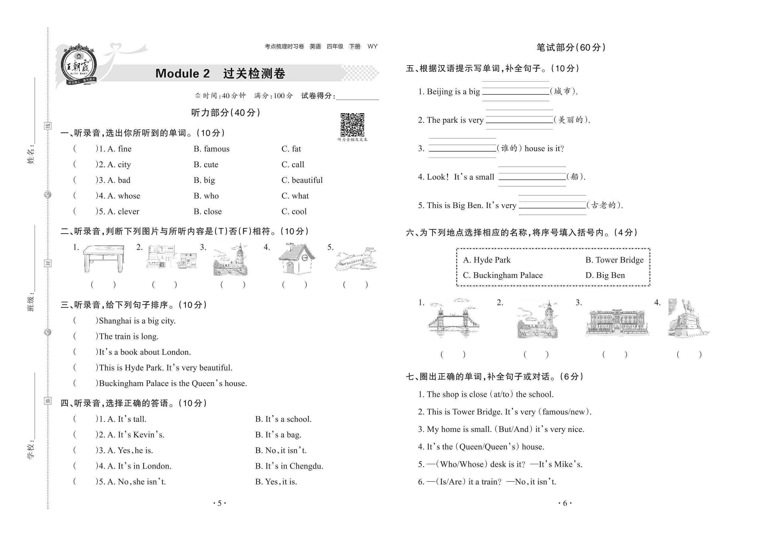 2022下册四年级英语外研版 Module 2 过关检测卷