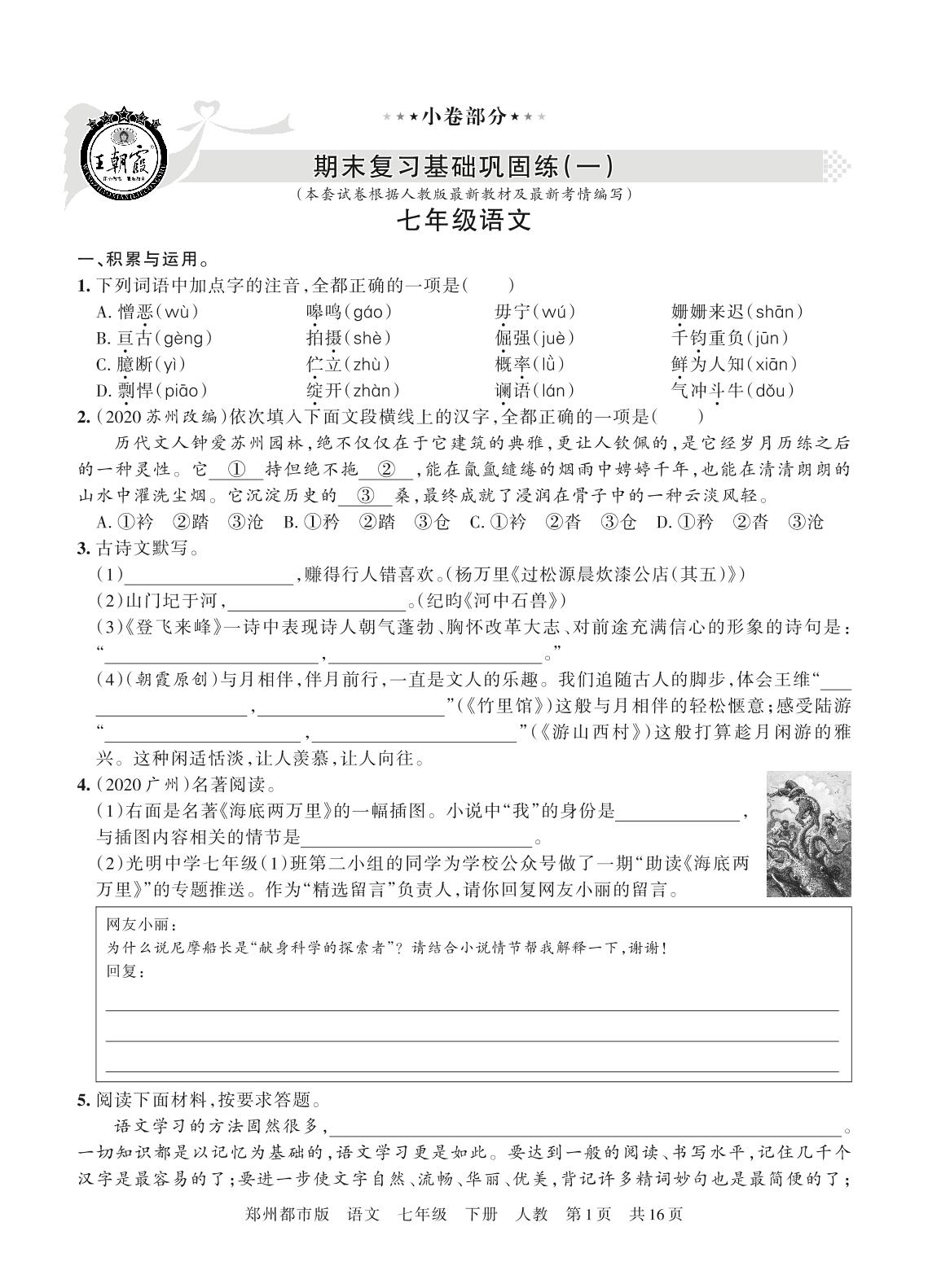 王朝霞期末小卷七年级下册语文(人教版)_R210801232710【0】