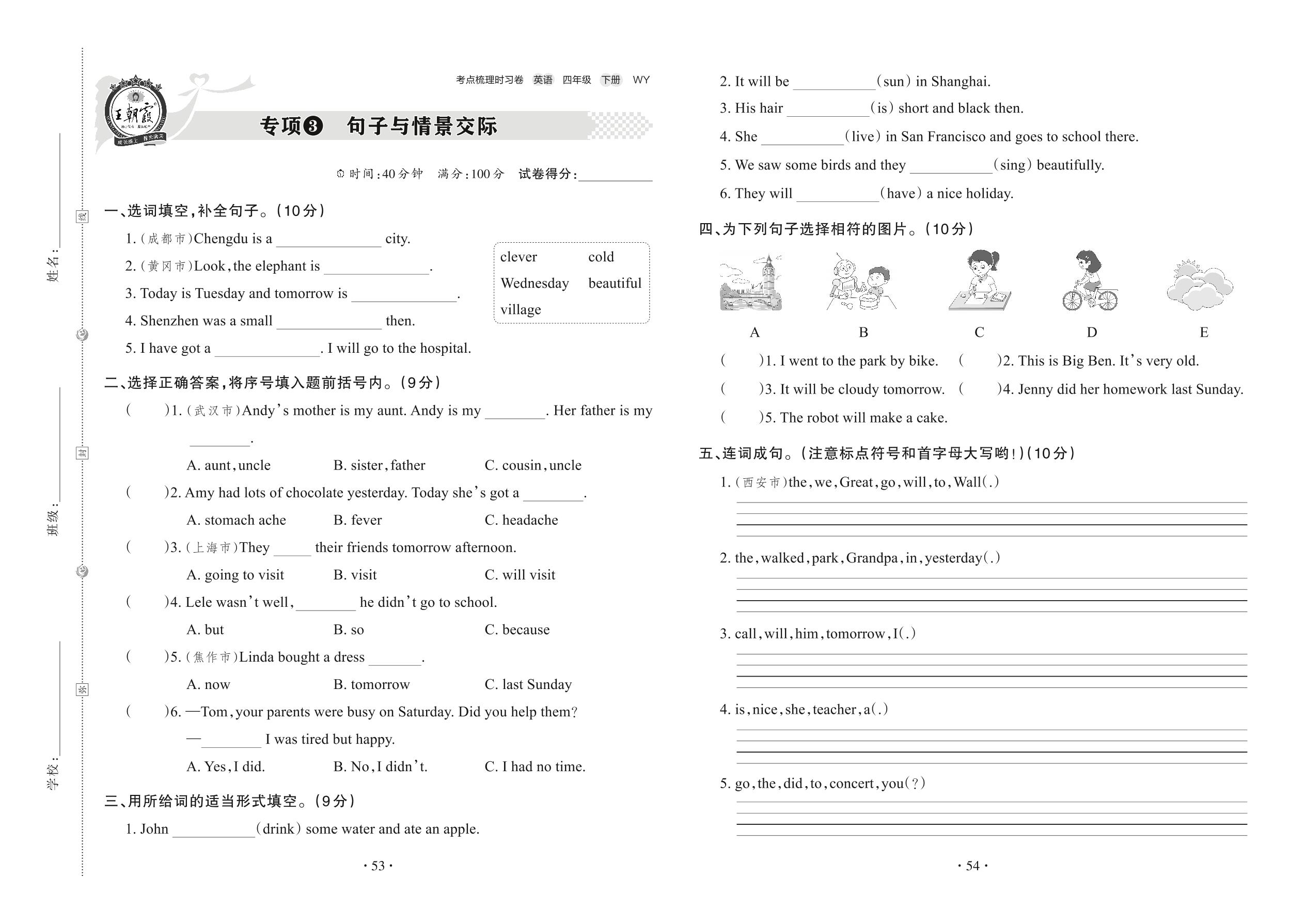 2022下册四年级英语外研版 专项3 句子与情景交际