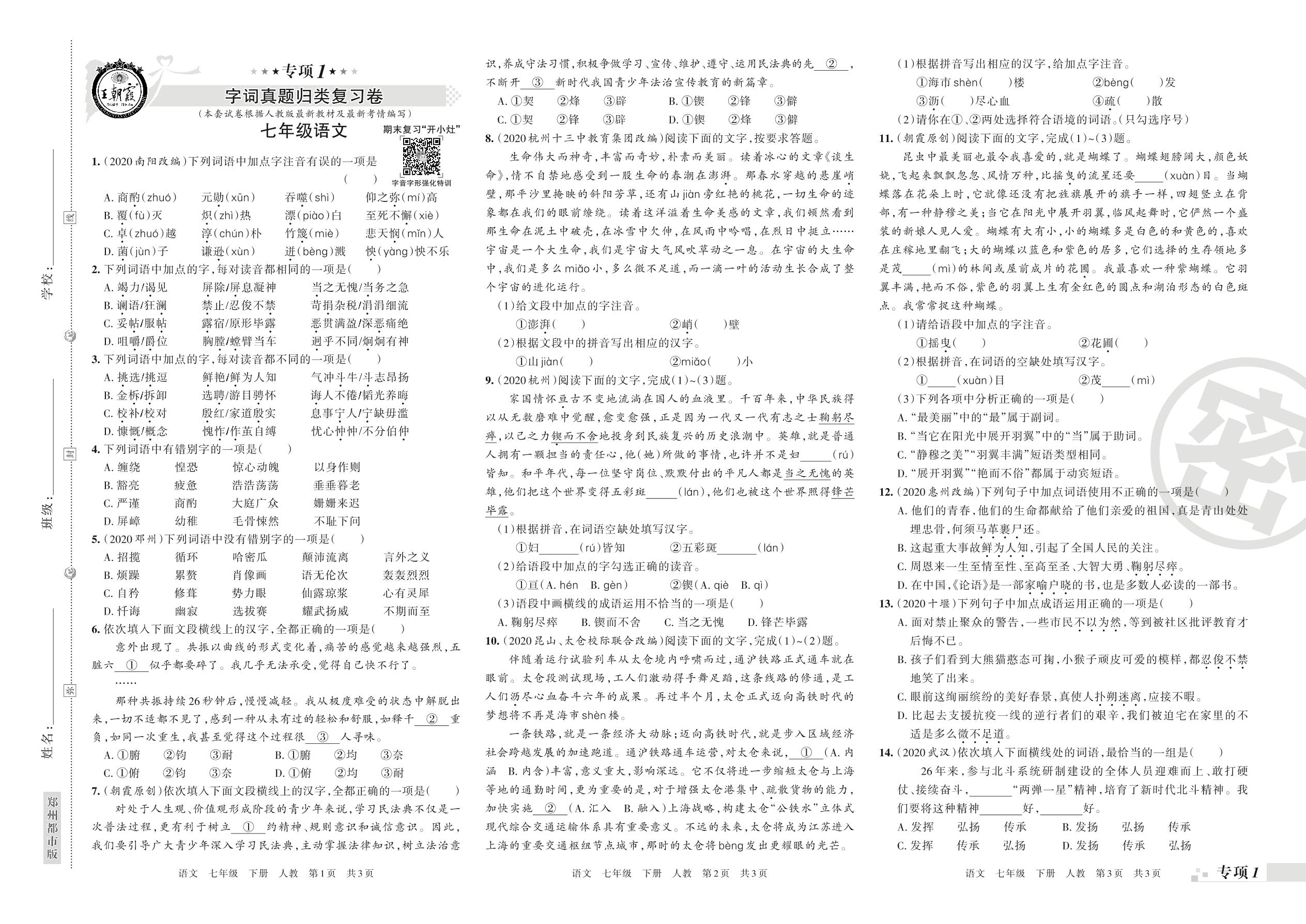 王朝霞期末专项卷——字词、句子七年级下册语文(人教版)_R210801232737【0】