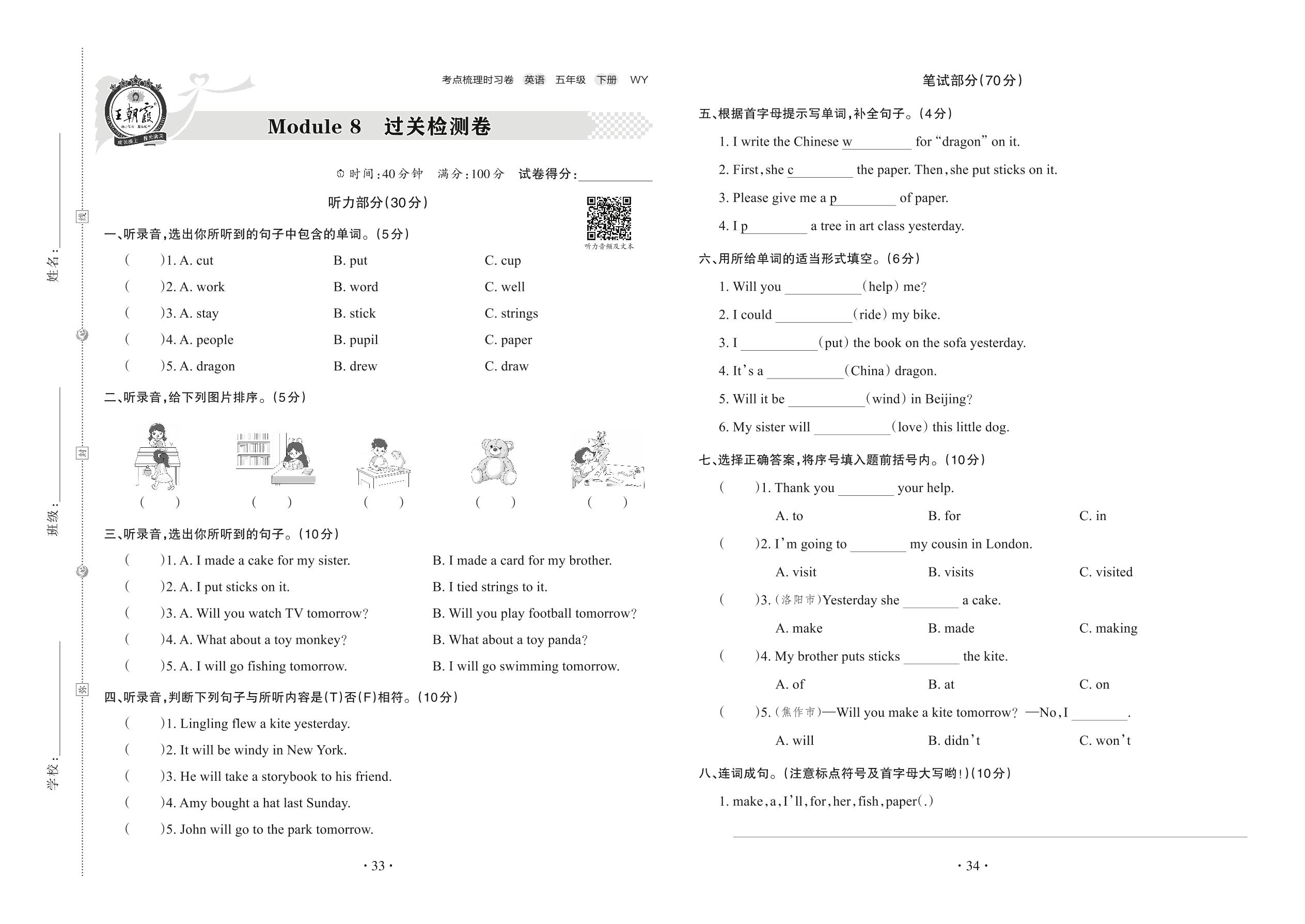 五年级英语外研版(三起始)下册单元卷