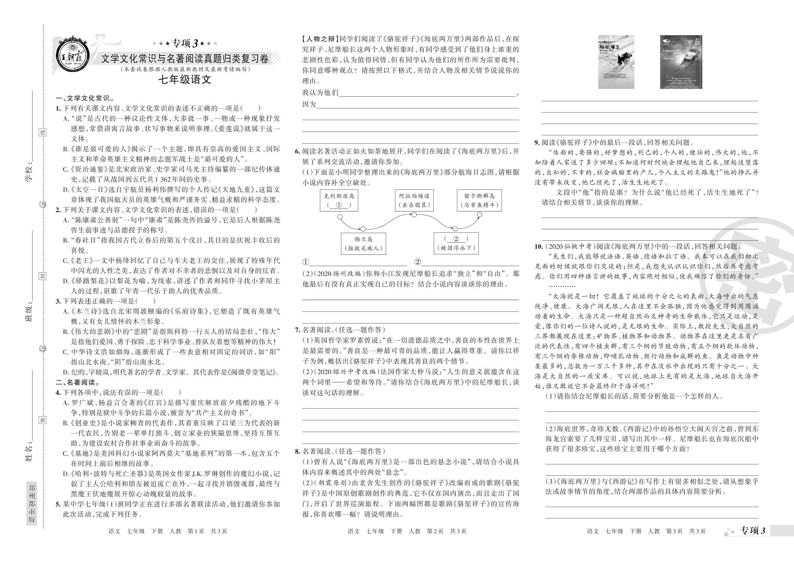 王朝霞期末专项卷——文学文化常识与名著阅读、综合性学习真题归类复习七年级下册语文(人教版)_R210801232746【0】