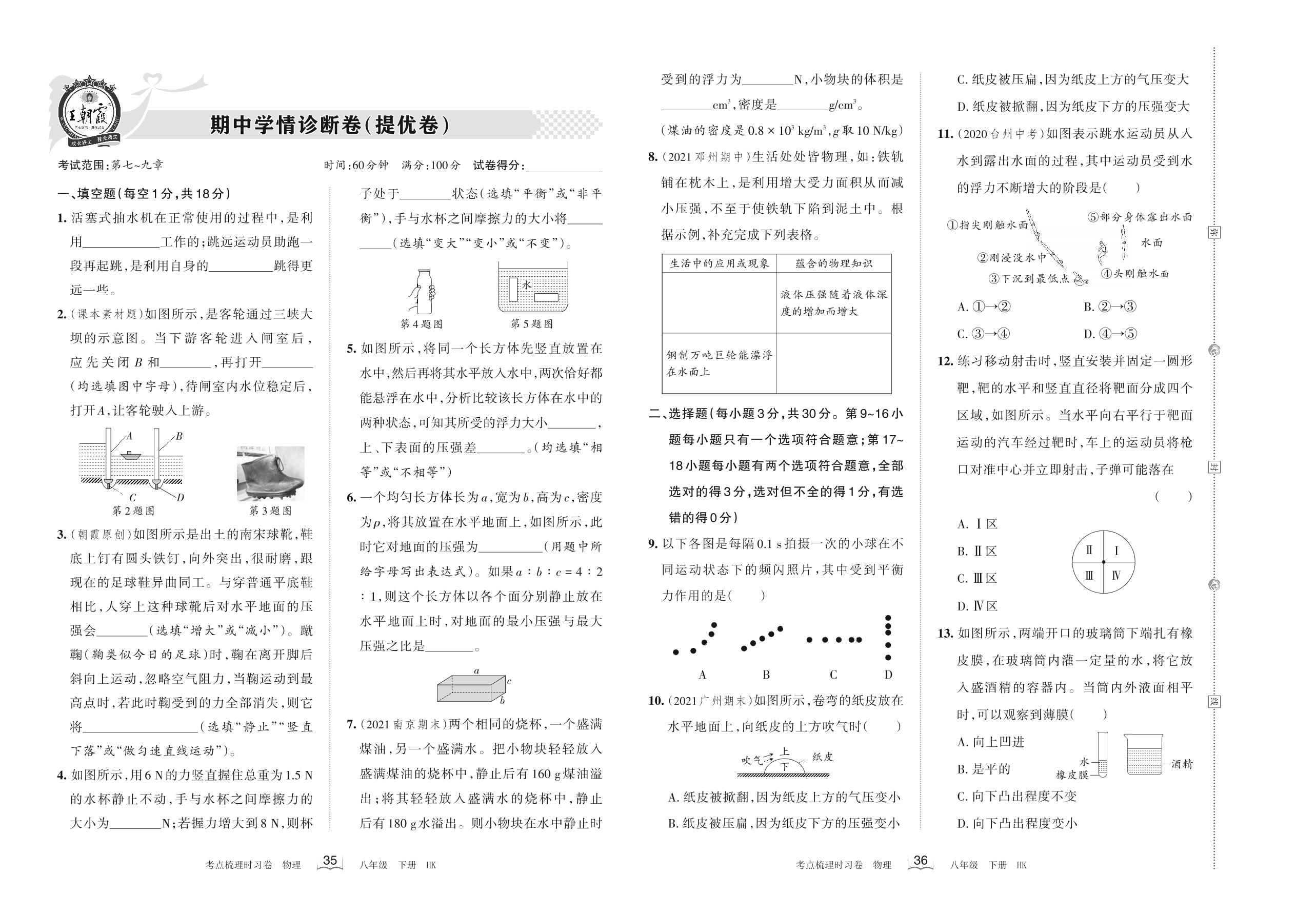 2021-2022学年第二学期八年级物理沪科版 期中学情诊断卷(提优卷)