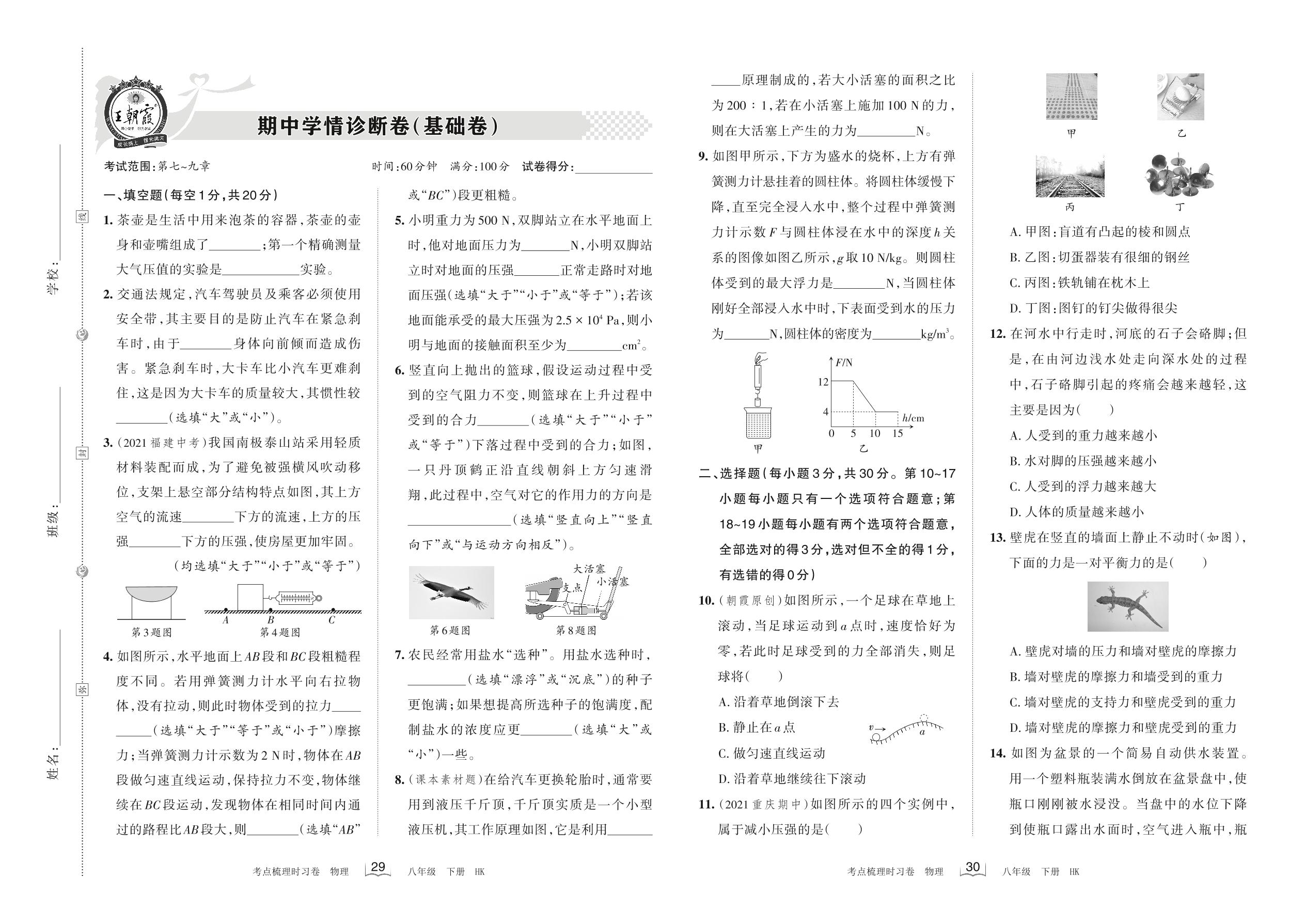 2021-2022学年第二学期八年级物理沪科版 期中学情诊断卷(基础卷)