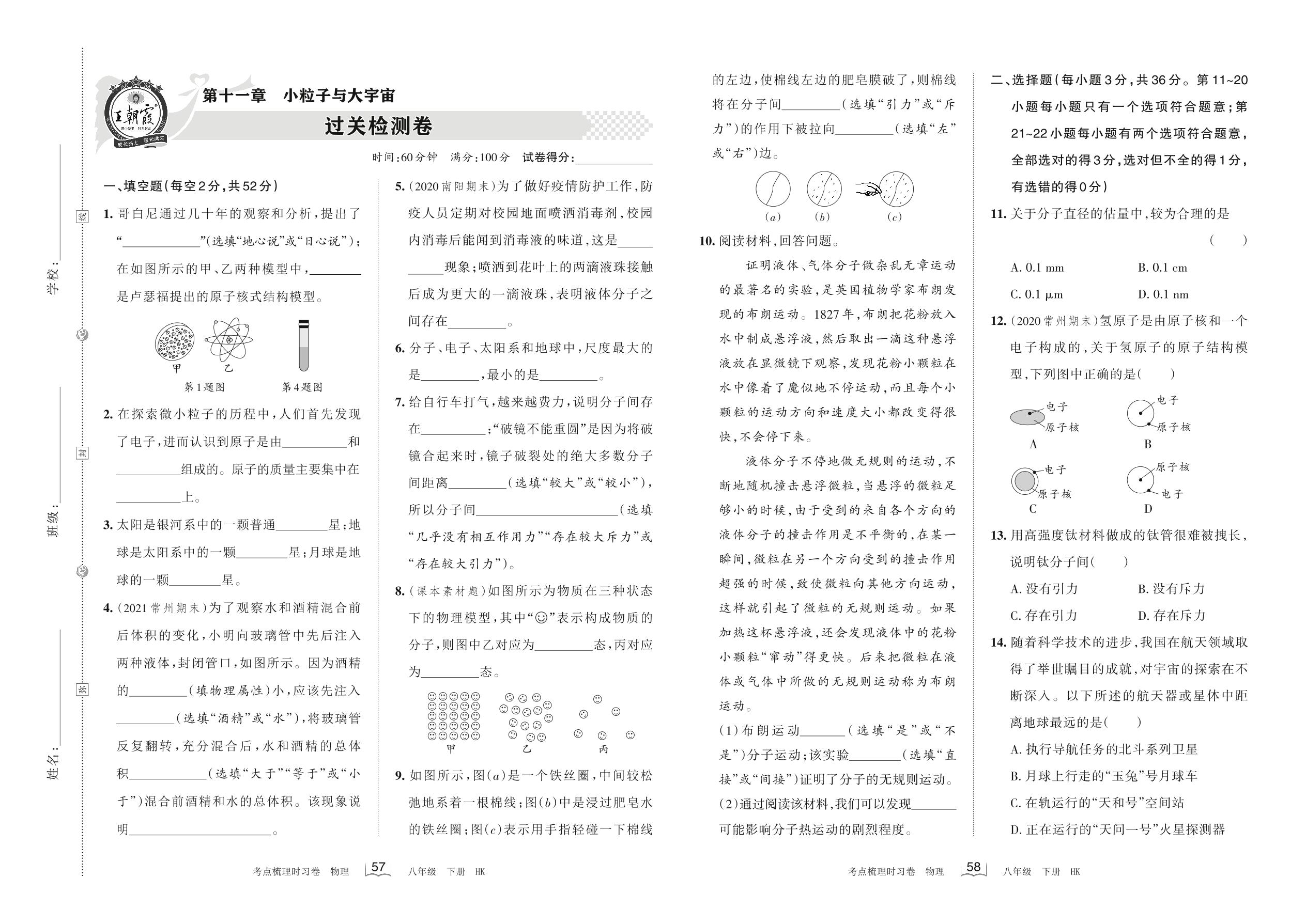 2021-2022学年八年级物理沪科版 第十一章 过关检测卷