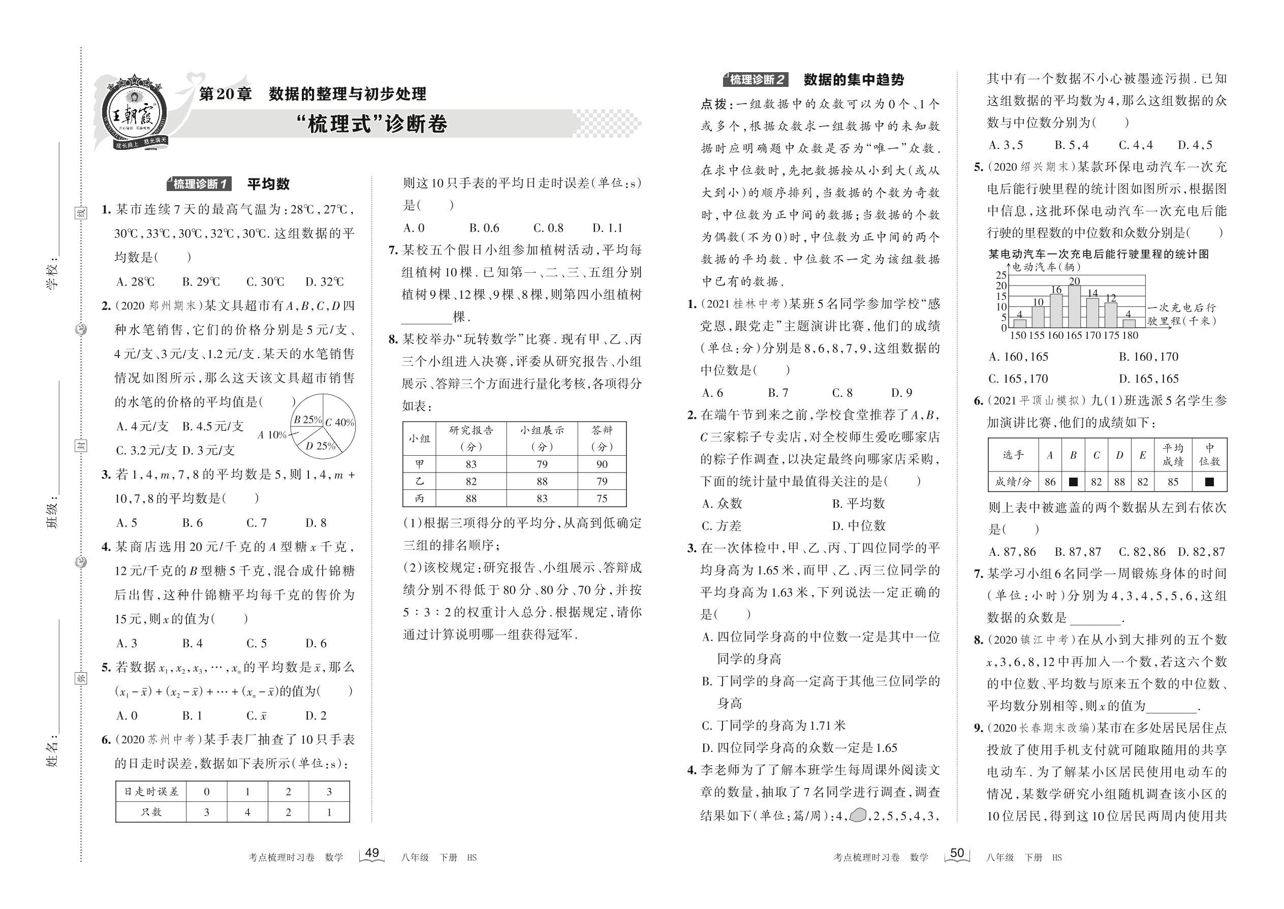 2022下册八年级数学华师版 第20章 “梳理式”诊断卷