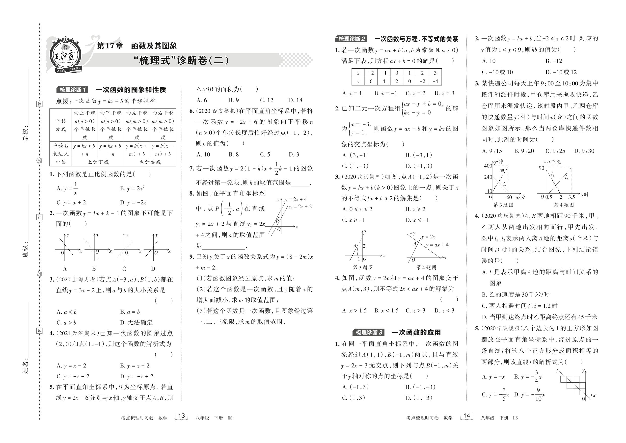 2022下册八年级数学华师版 第17章 “梳理式”诊断卷(二)