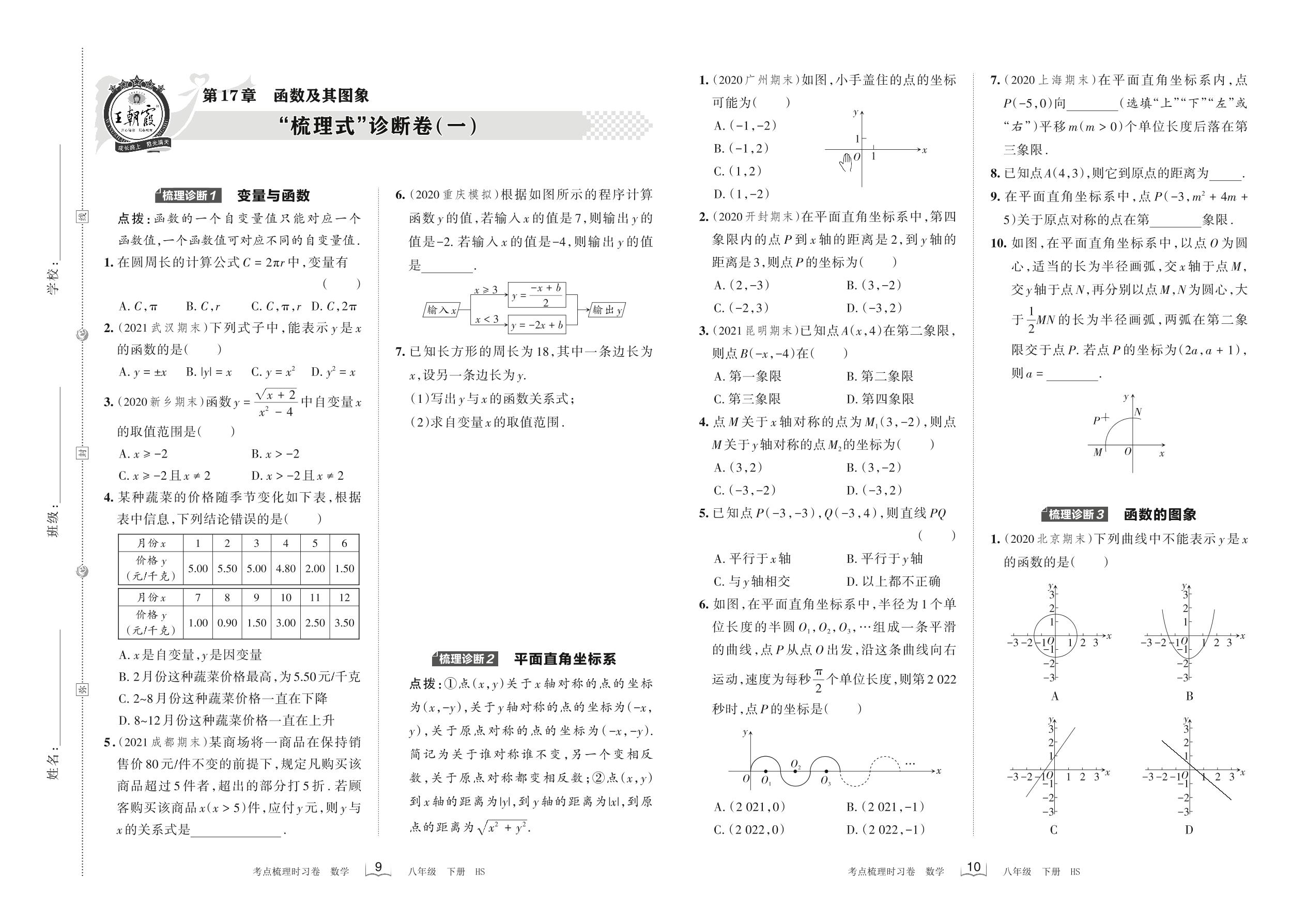 2022下册八年级数学华师版 第17章 “梳理式”诊断卷(一)