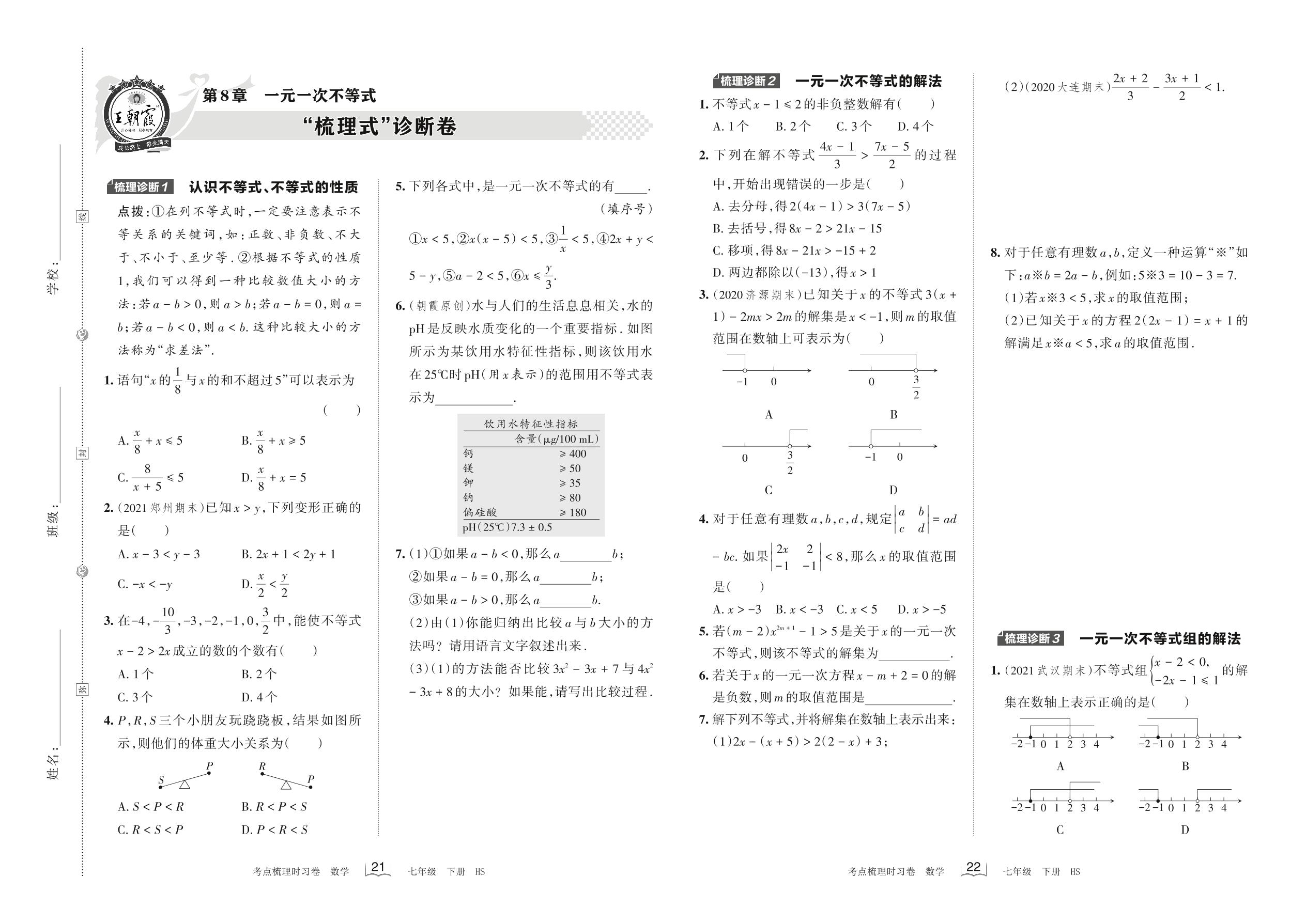 2022下册七年级数学华师版 第8章 “梳理式”诊断卷