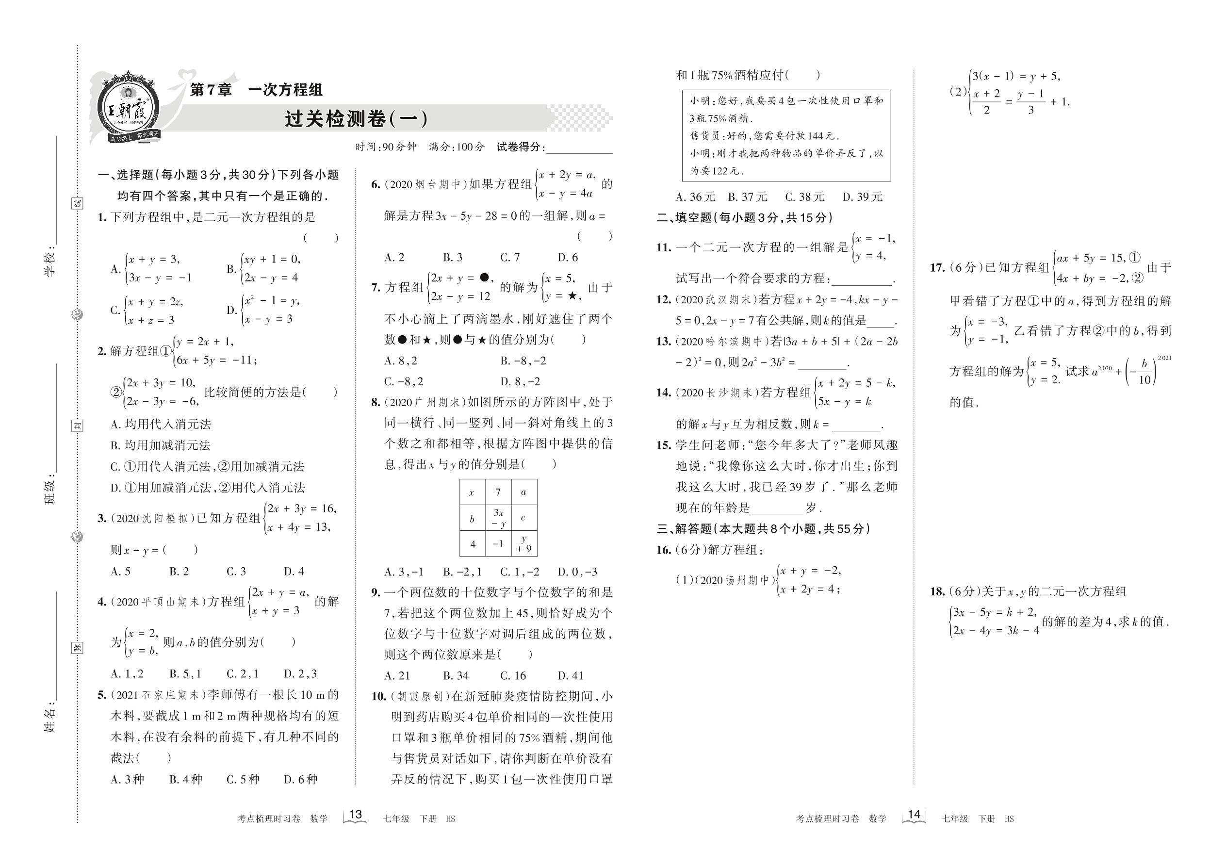 2022下册七年级数学华师版 第7章 过关检测卷(一)
