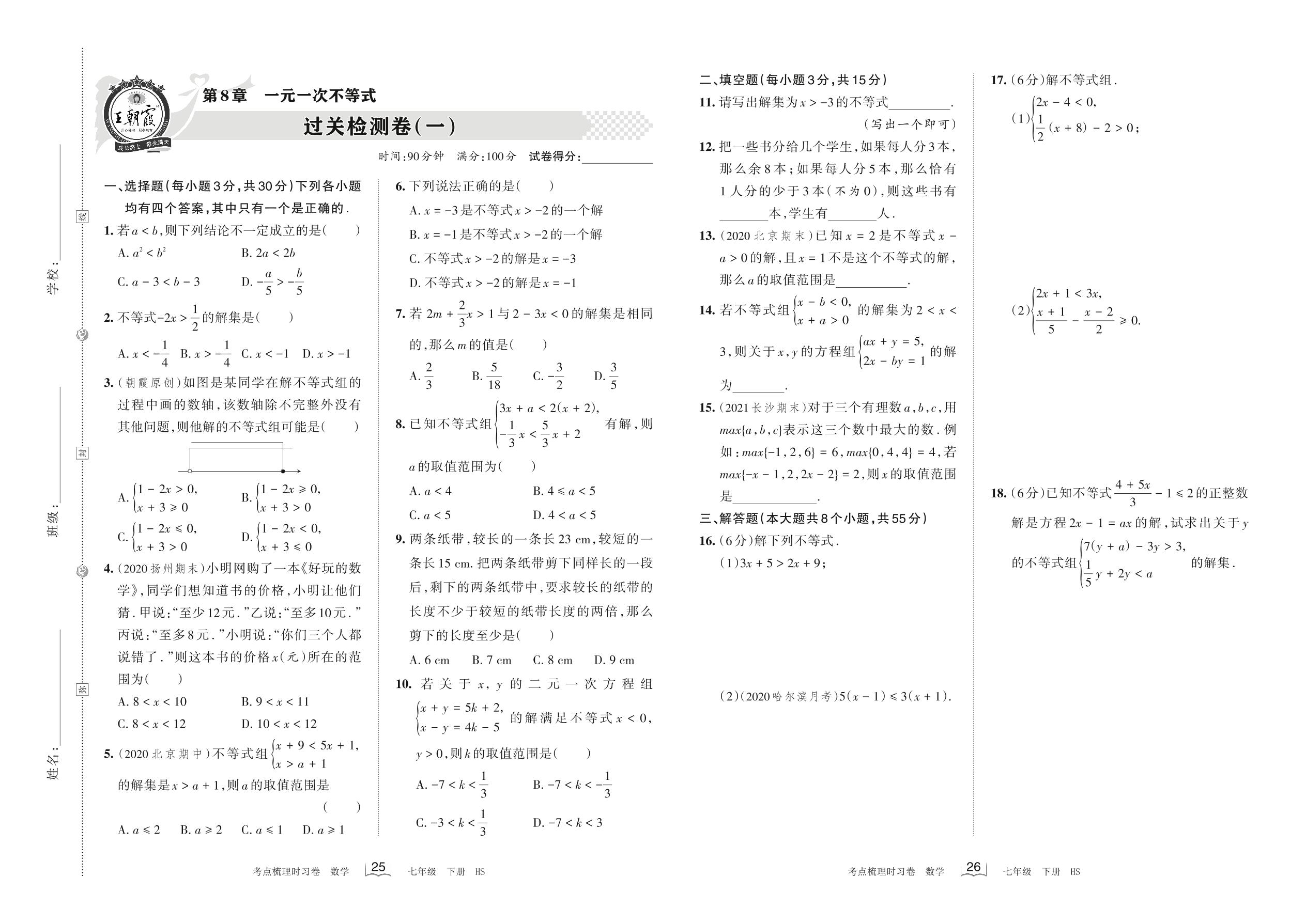 2022下册七年级数学华师版 第8章 过关检测卷(一)