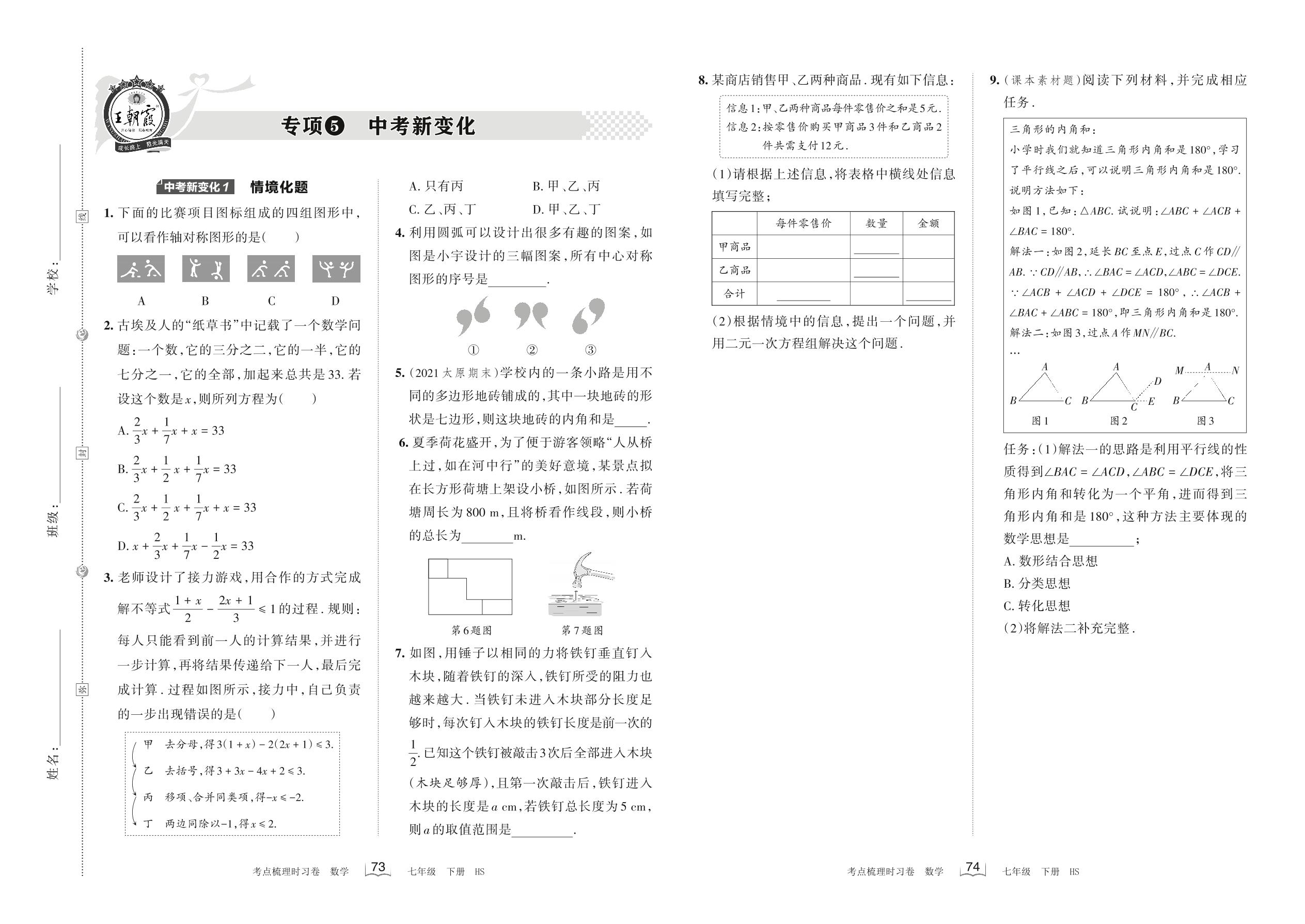 2022下册七年级数学华师版 专项5 中考新变化
