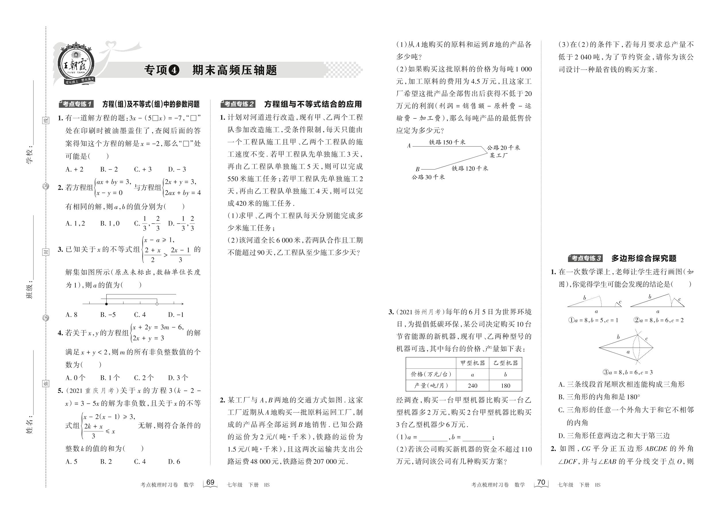 2022下册七年级数学华师版 专项4 期末高频压轴题