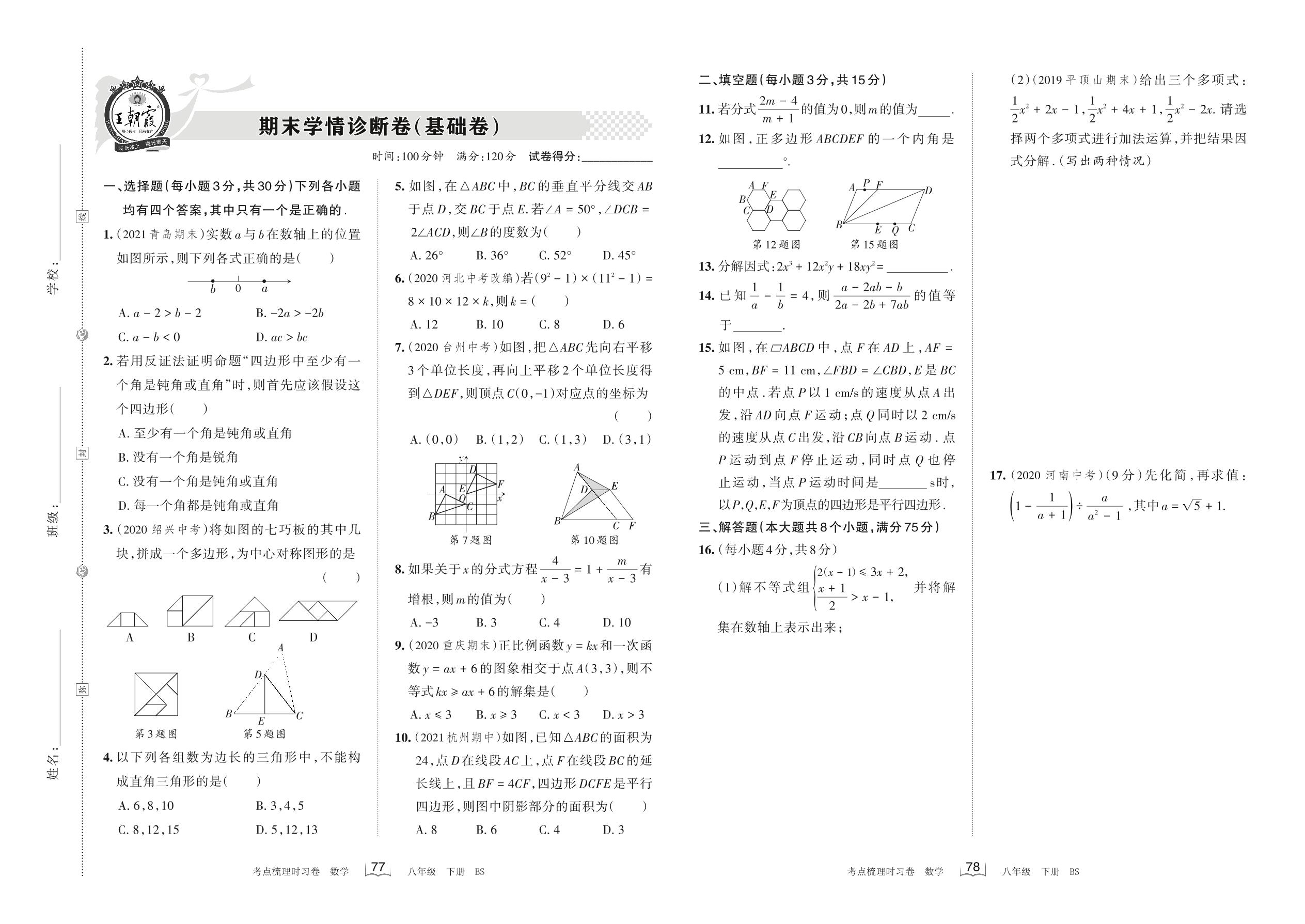 2022下册八年级数学北师版 期末学情诊断卷(基础卷)