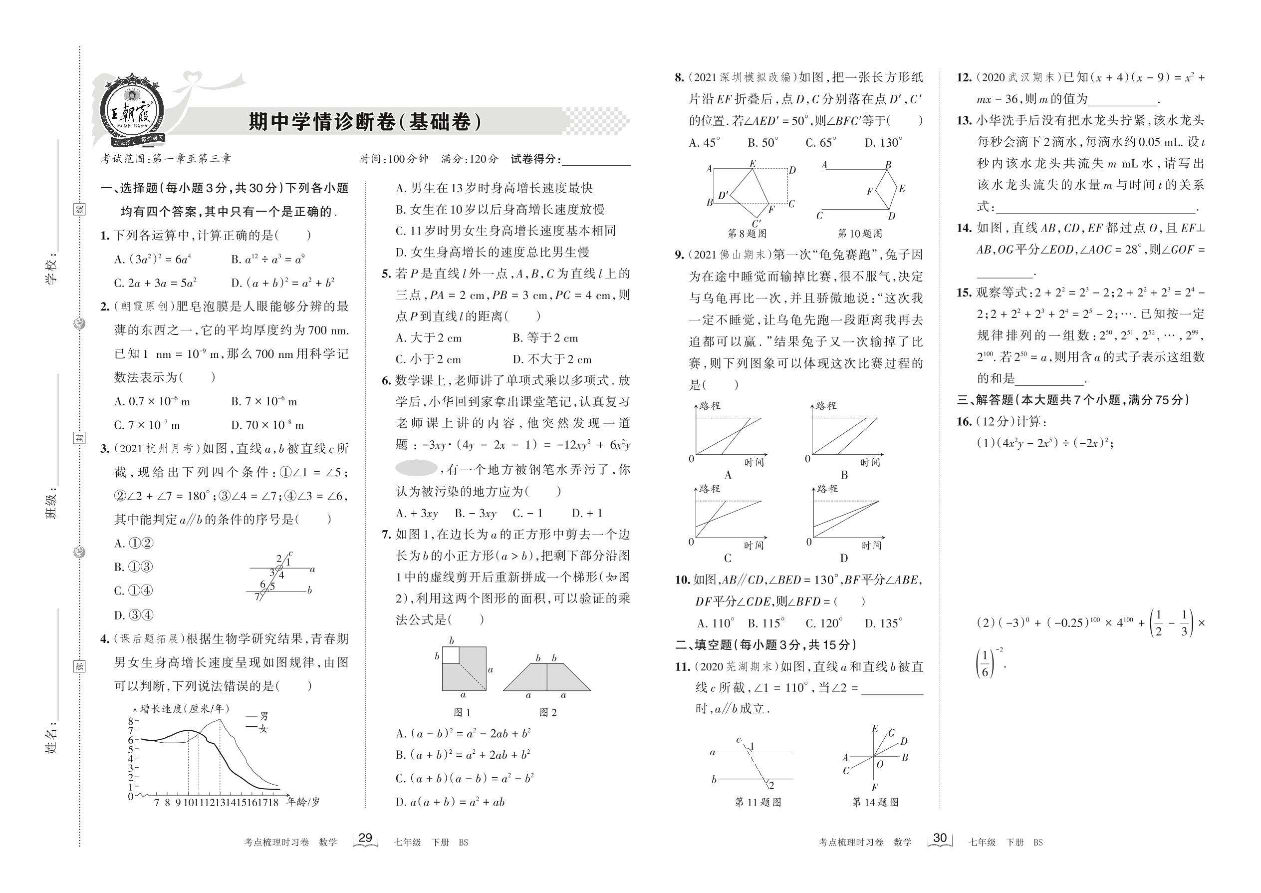 2022下册七年级数学北师版 期中学情诊断卷(基础卷)
