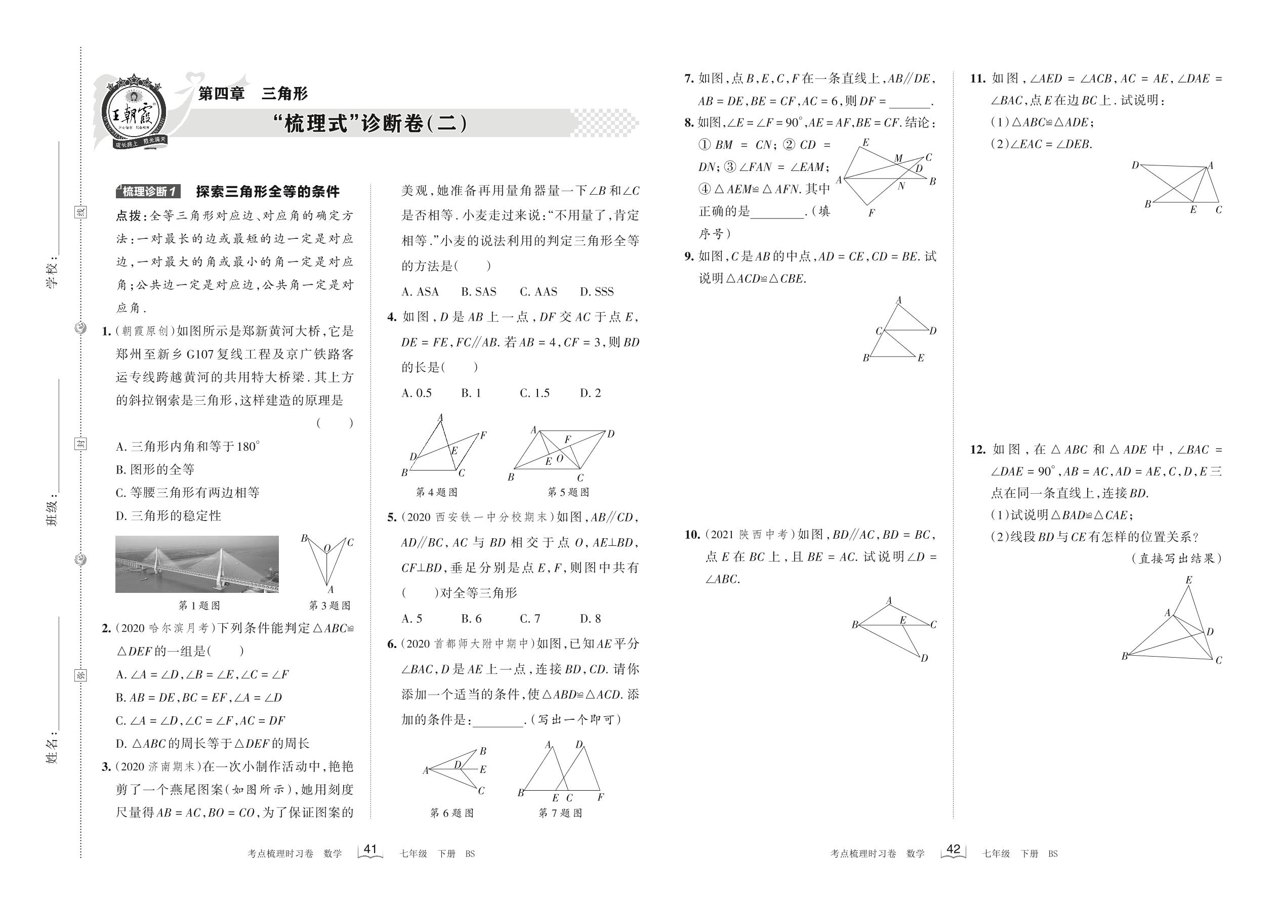 2022下册七年级数学北师版 第四章 “梳理式”诊断卷(二)