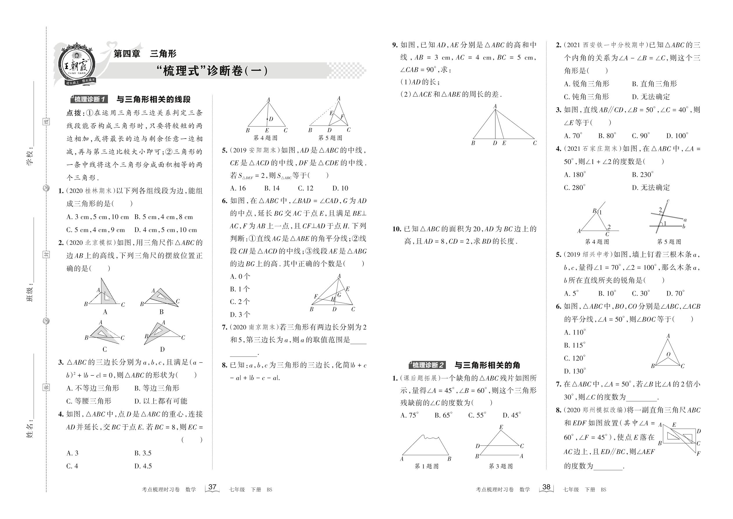 2022下册七年级数学北师版 第四章 “梳理式”诊断卷(一)