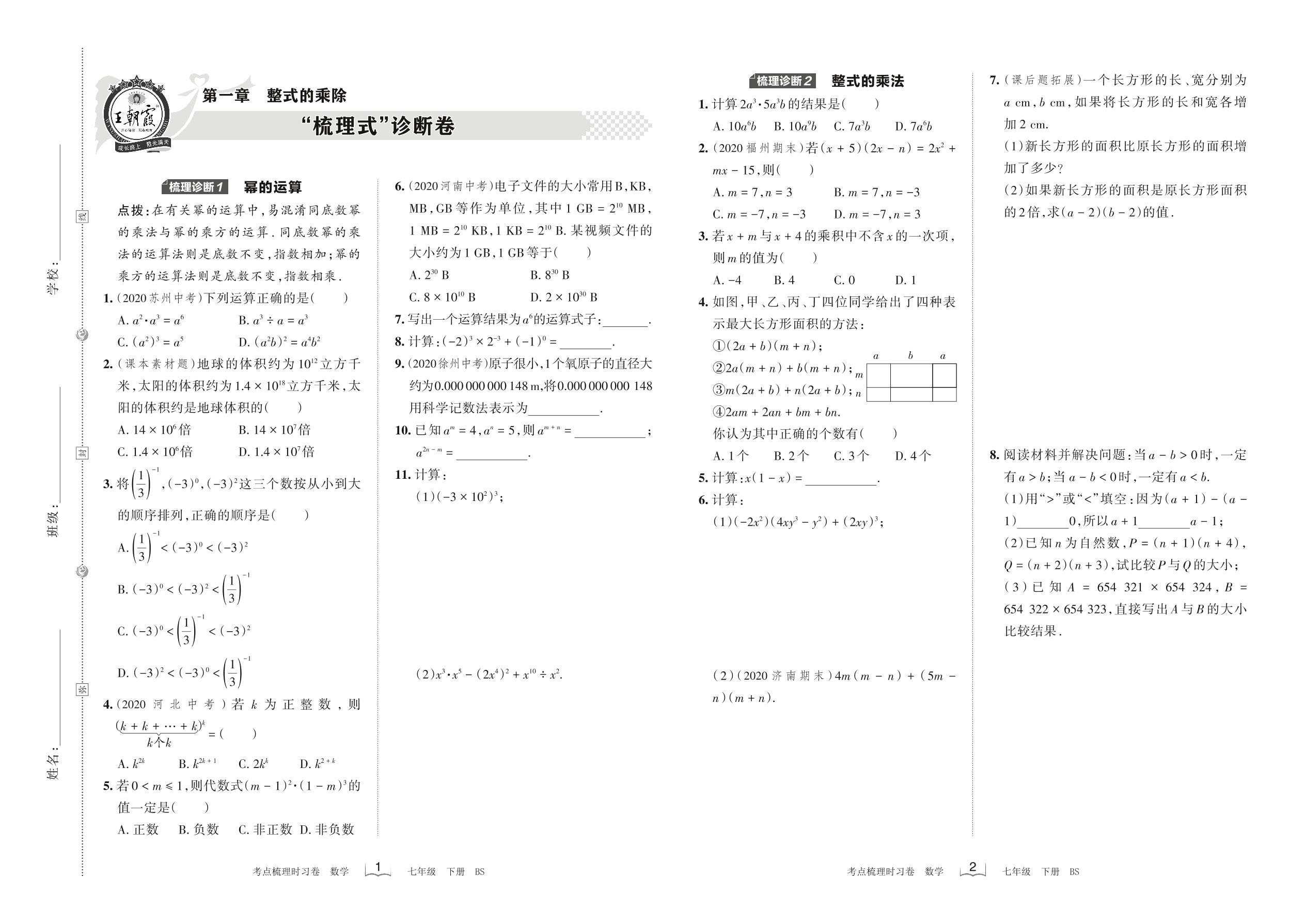 2022下册七年级数学北师版 第一章 “梳理式”诊断卷