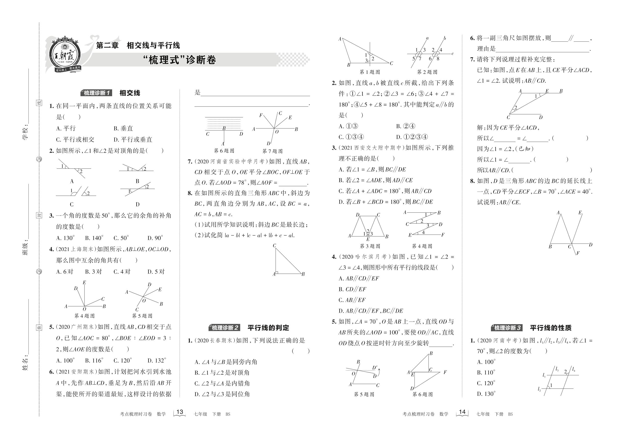 2022下册七年级数学北师版 第二章 “梳理式”诊断卷