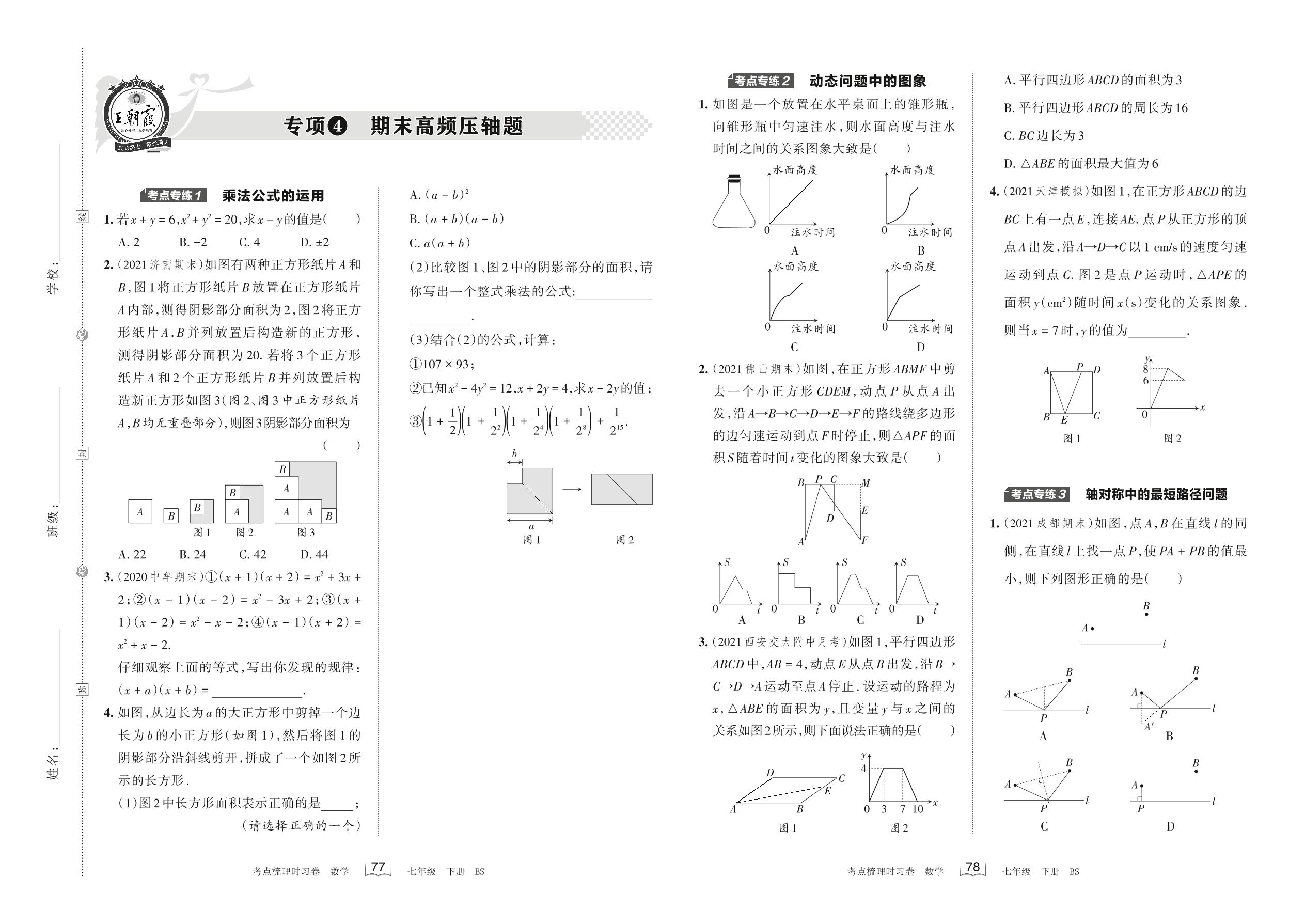 2022下册七年级数学北师版 专项4 期末高频压轴题