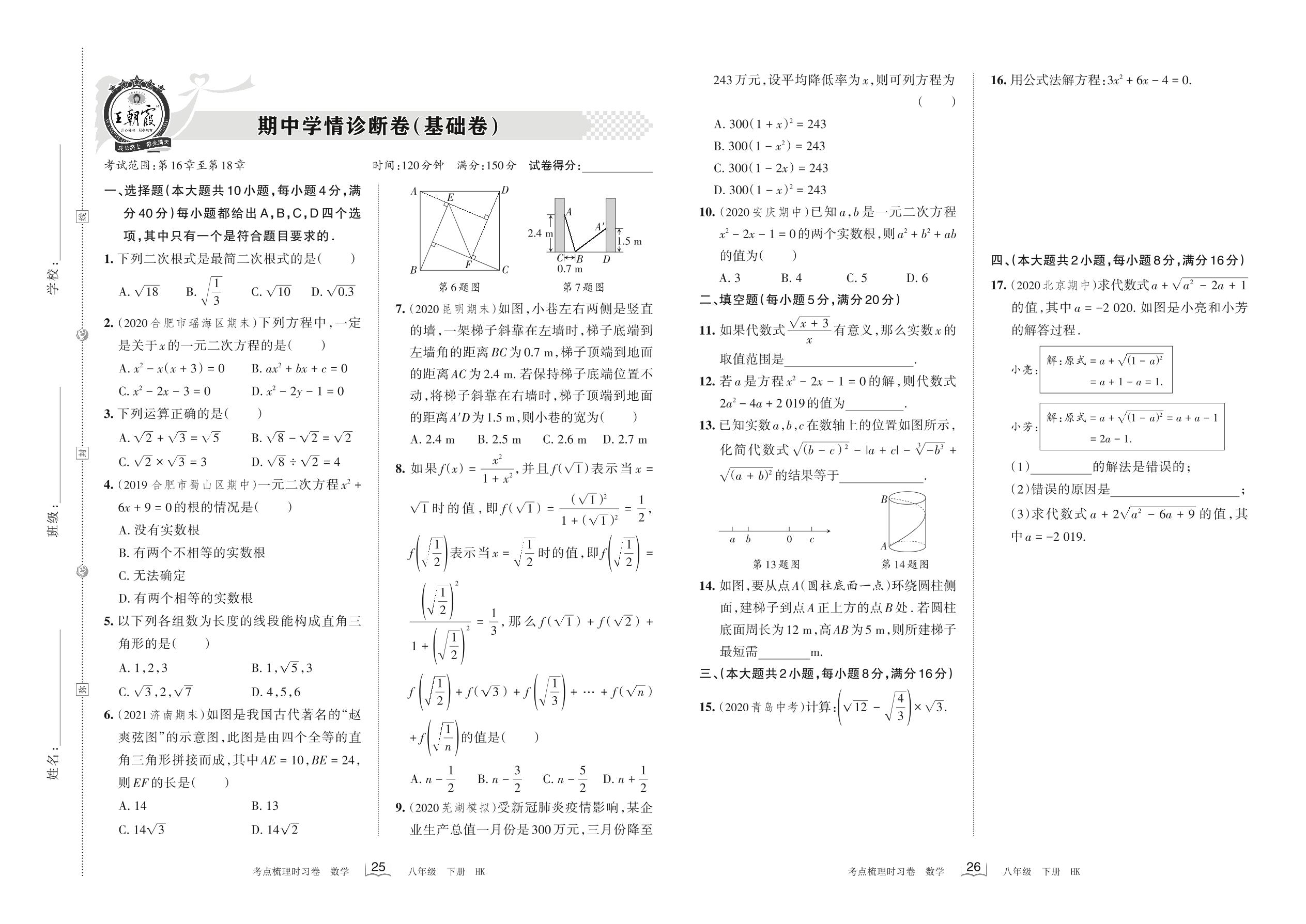 2022下册八年级数学沪科版 期中学情诊断卷(基础卷)
