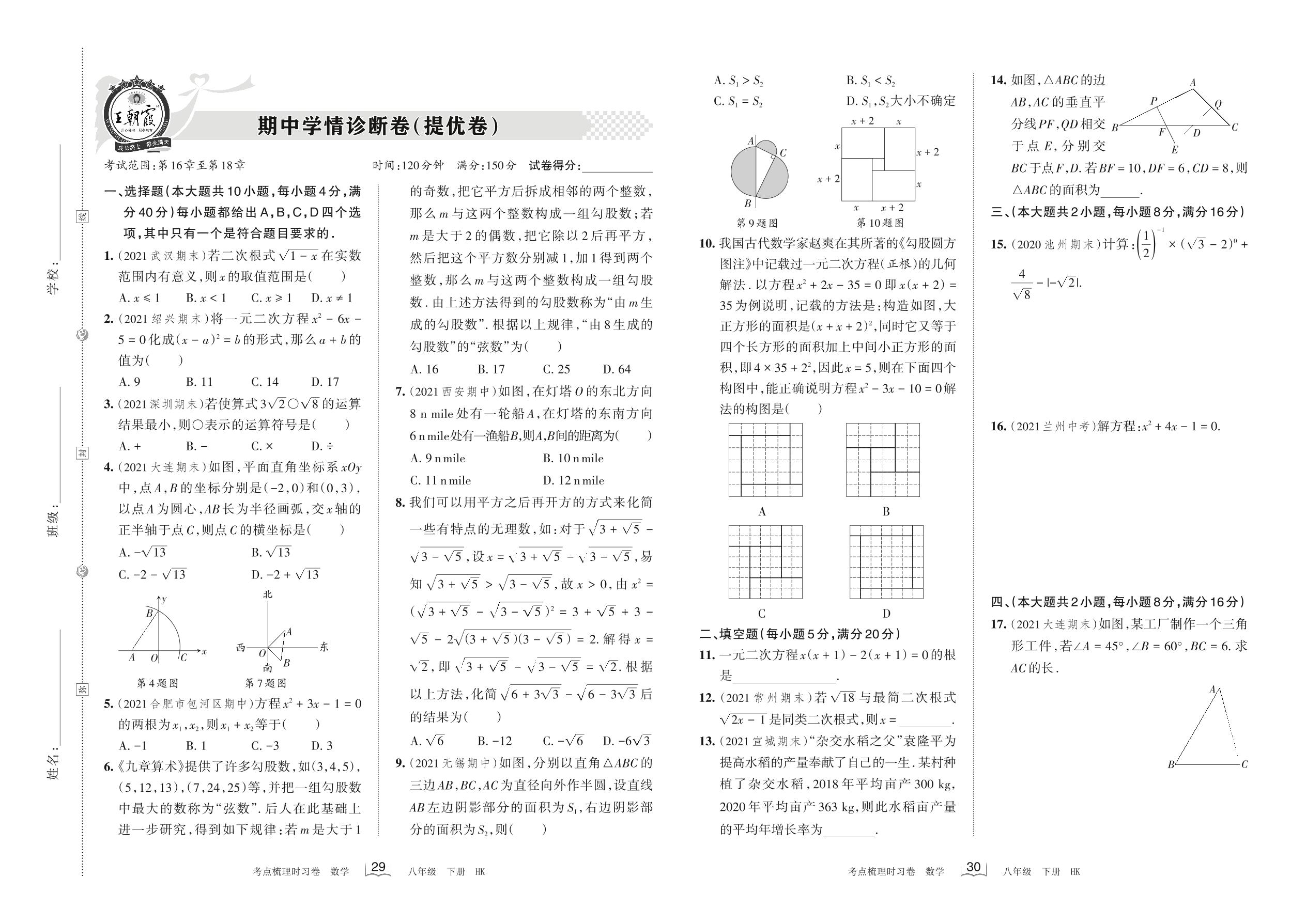 2022下册八年级数学沪科版 期中学情诊断卷(提优卷)