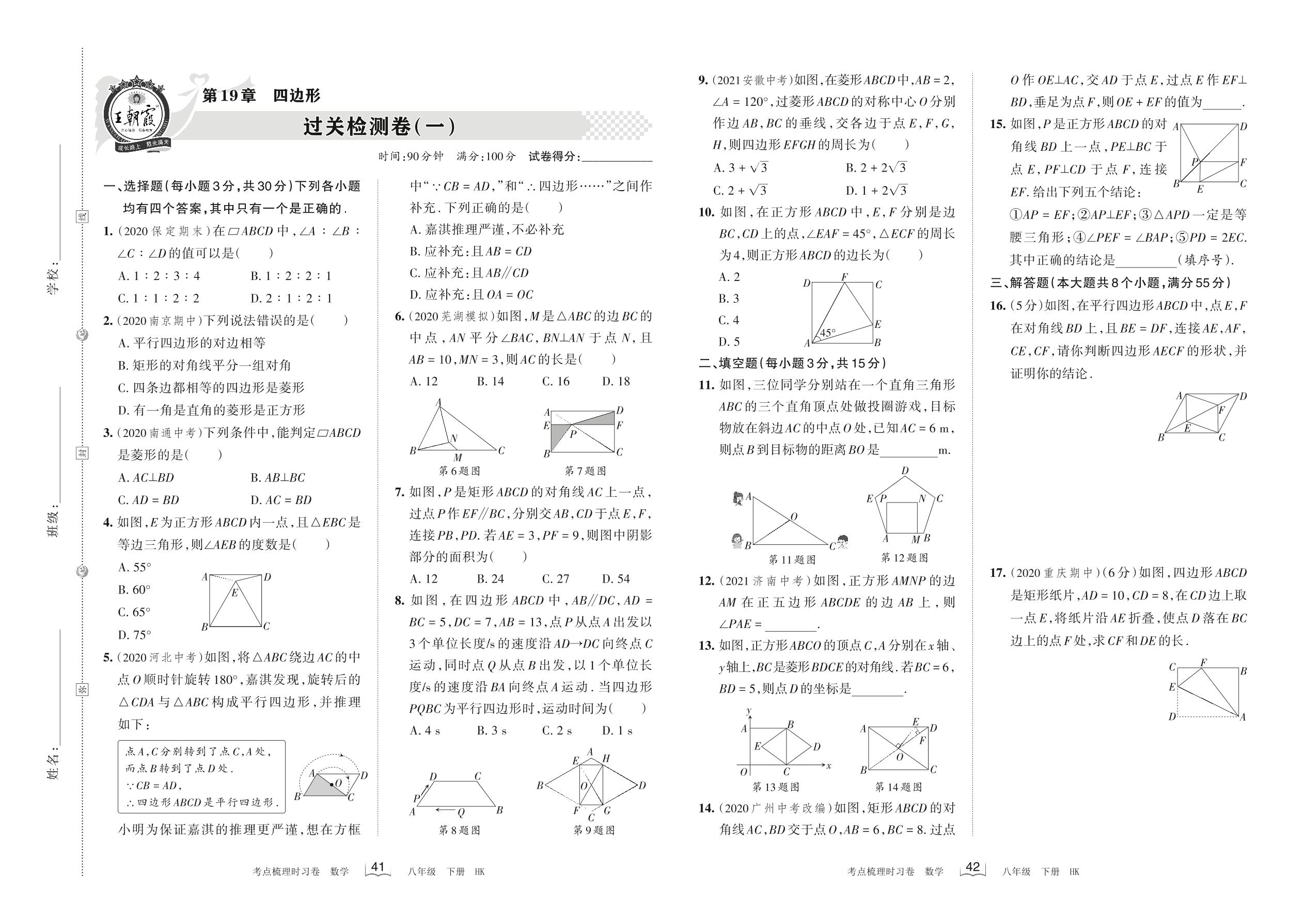 2022下册八年级数学沪科版 第19章 过关检测卷(一)