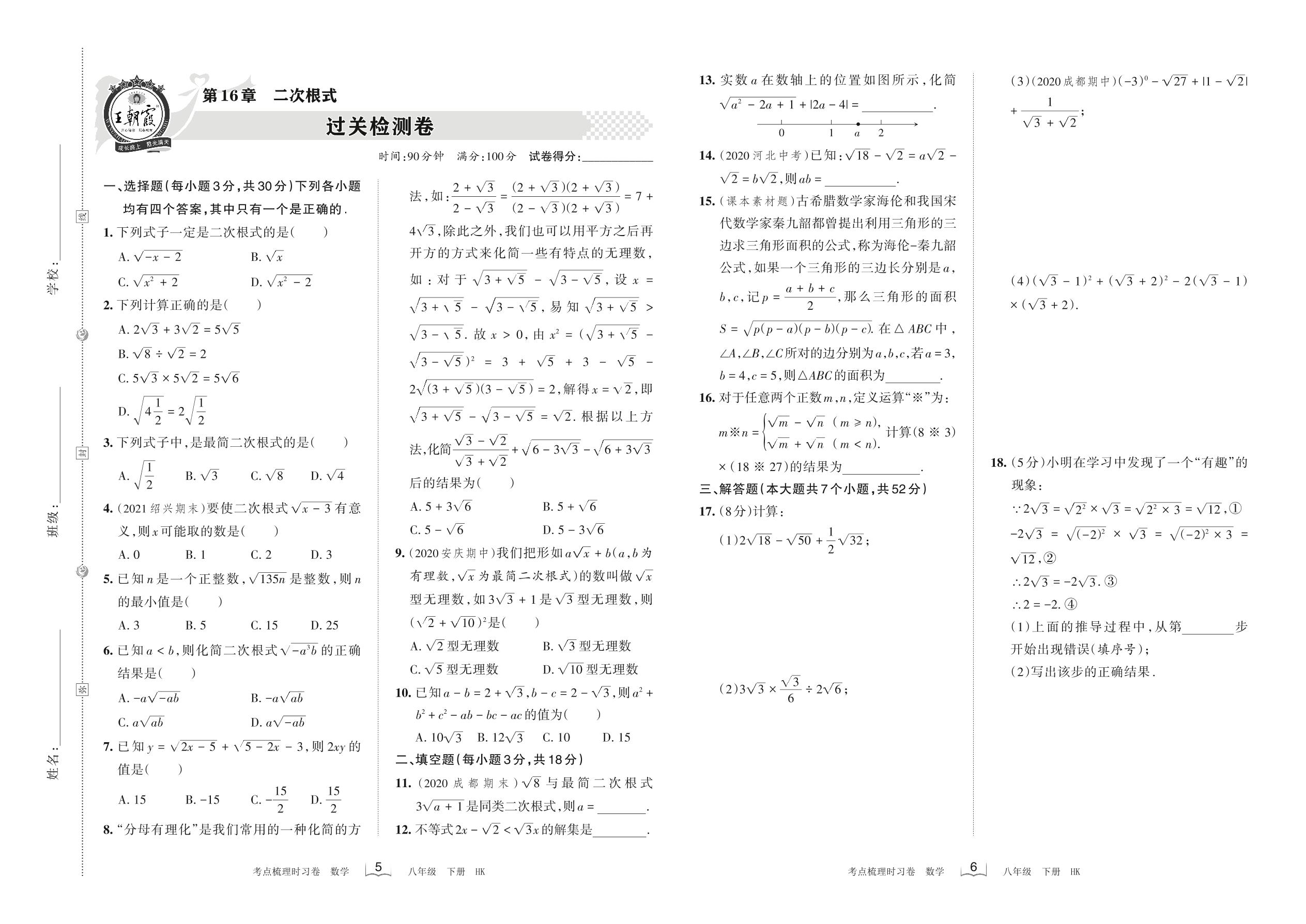 2022下册八年级数学沪科版 第16章 过关检测卷