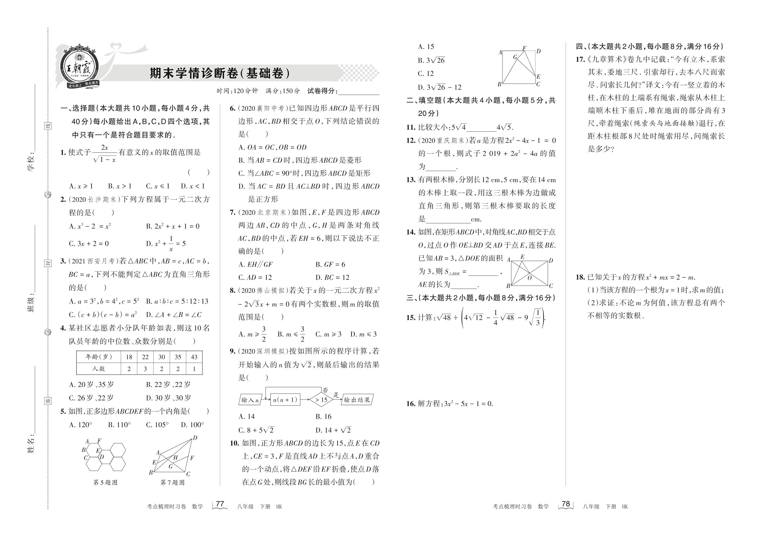2022下册八年级数学沪科版 期末学情诊断卷(基础卷)