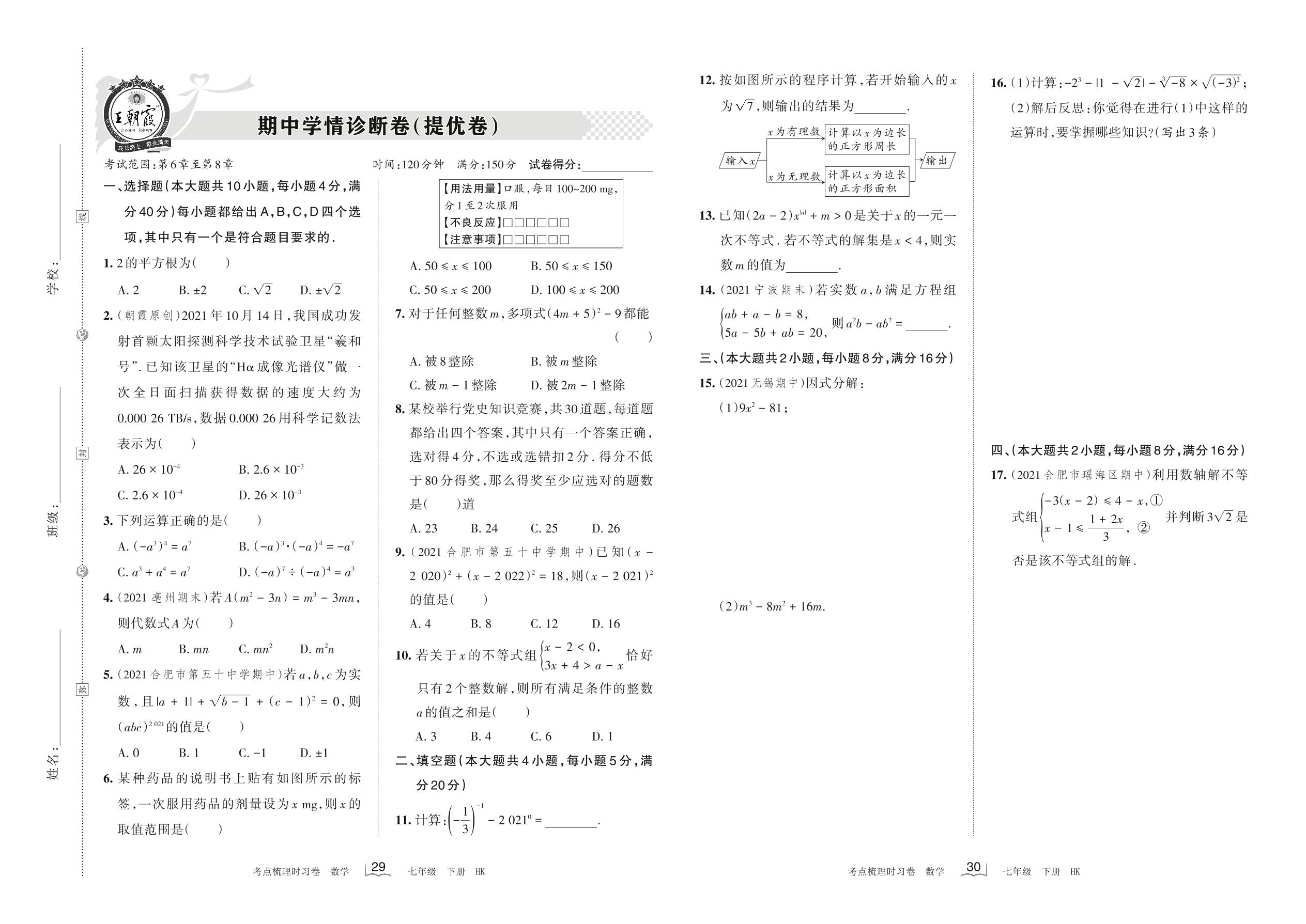 2022下册七年级数学沪科版 期中学情诊断卷(提优卷)
