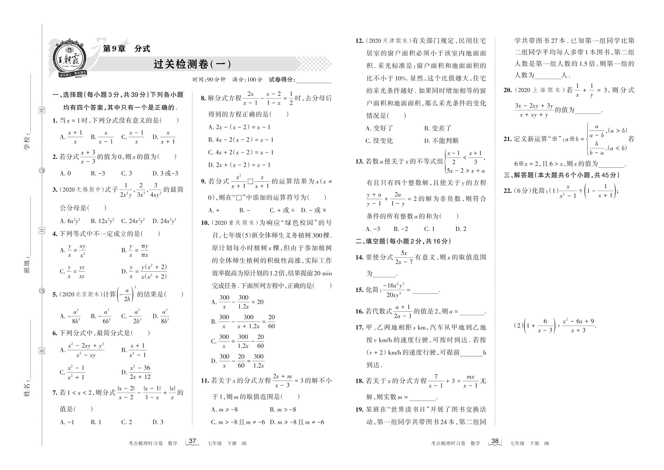 2022下册七年级数学沪科版 第9章 过关检测卷(一)